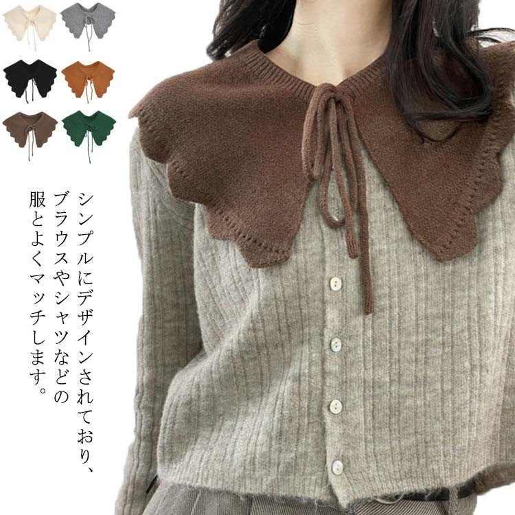 フェイクカラー ニット レディース 付 付け襟 超目玉商品 ブラウン キャメル グリーン ブラック グレー オフホワイト