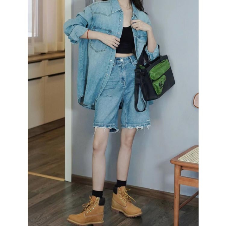 デニムセットアップデニムシャツ デニム レディースファッション 超目玉商品 M(45-52.5KG) L(52.5-57.5KG) XL(57.5-62.5KG) 2XL(62.5-67.5KG) 3XL(67.5-75KG)