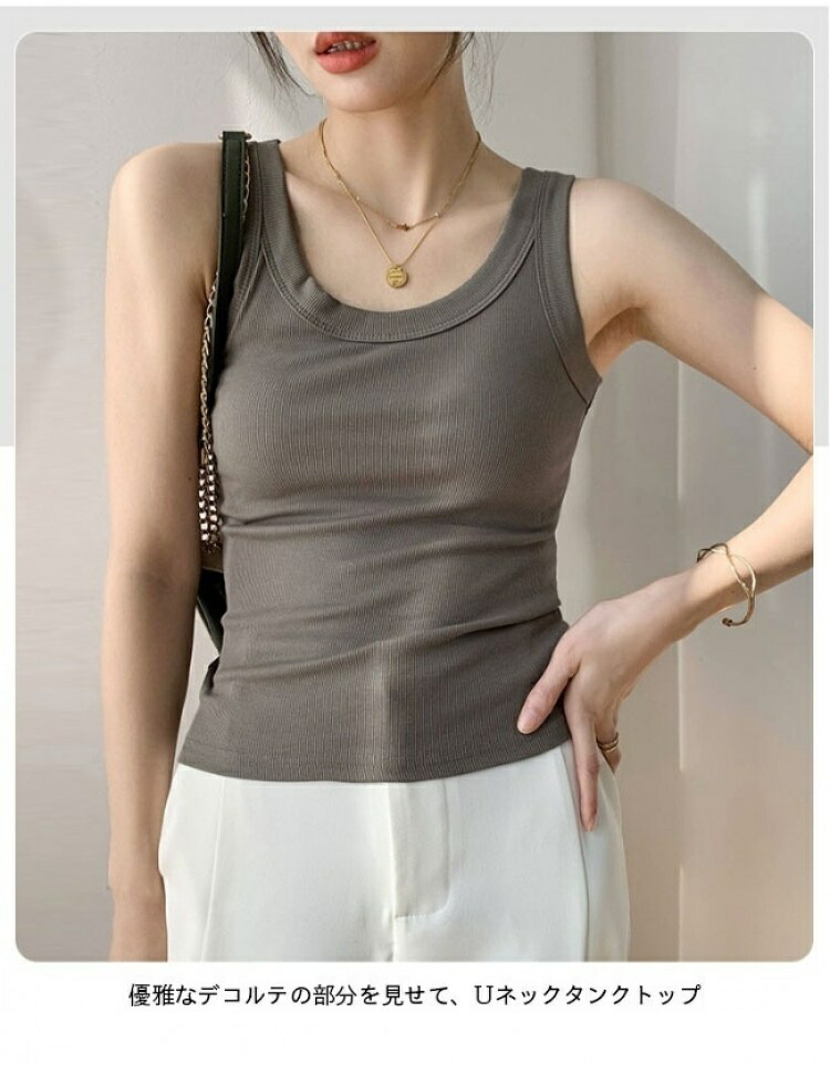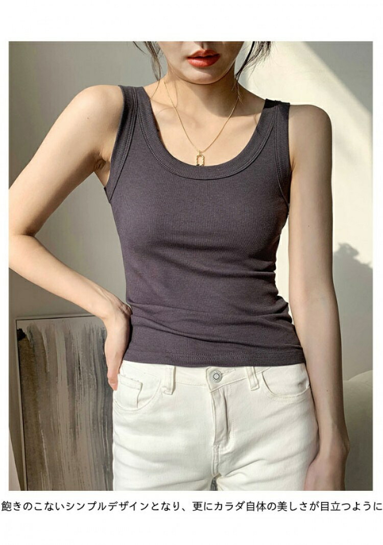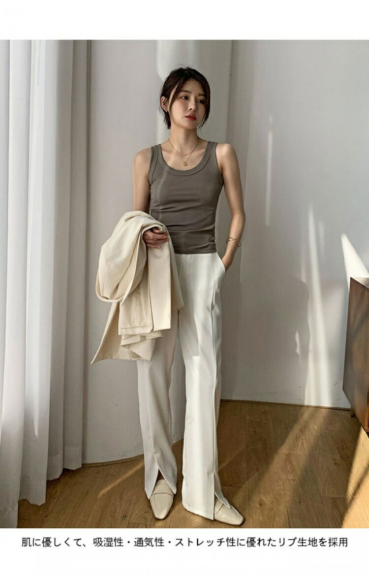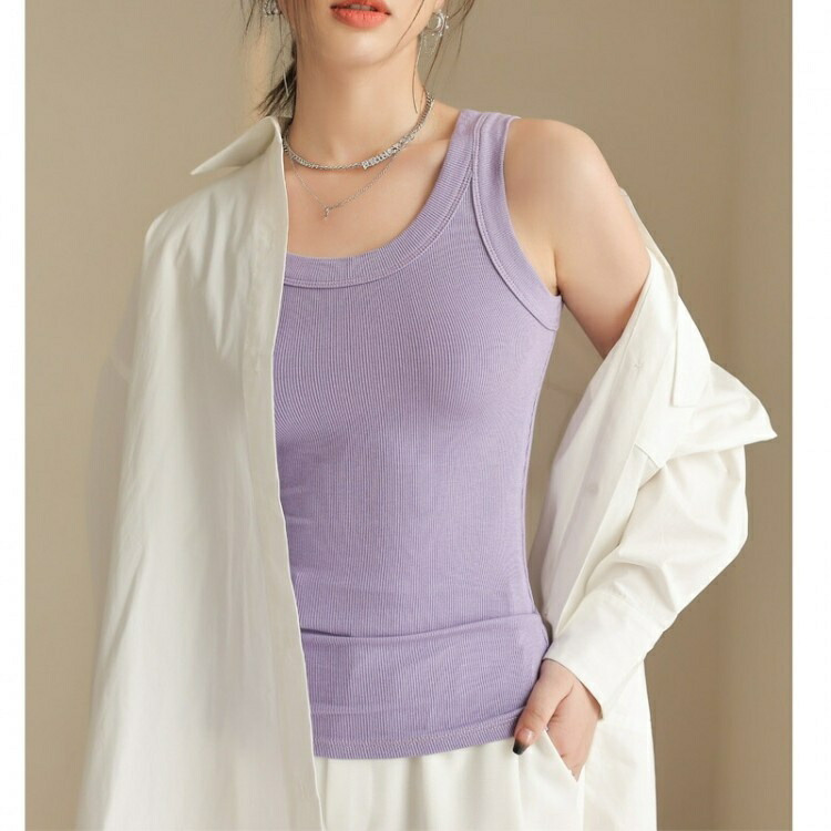 リブタンクトップ レディース Uネック レディースファッション 早い者勝ち M L XL 2XL ホワイト ライトイエロー パープル グリーン ブラック カーキグリーン ダークグレー ライトグレー ダークイエロー