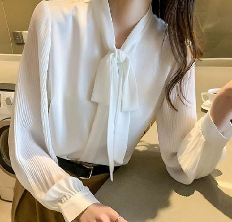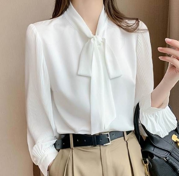 シアースリーブ ドッキングシャツ ボウタイシャツブラウス