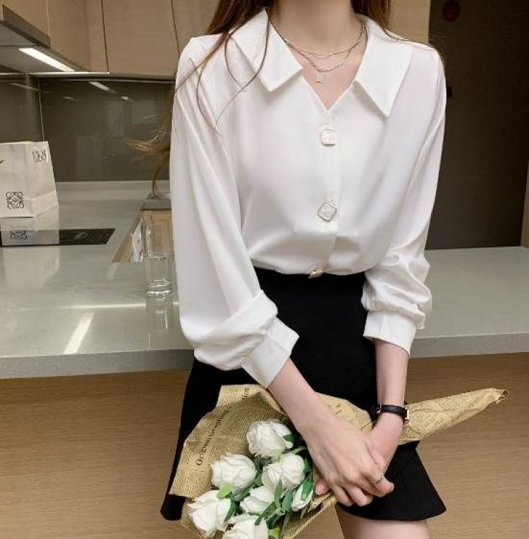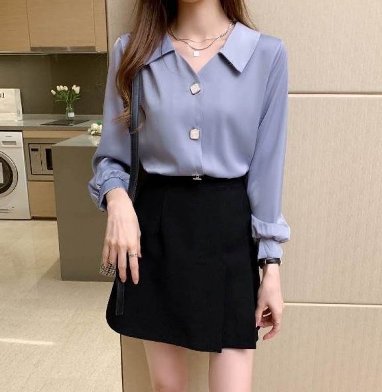 Vネック 前開き シンプル 襟付き 3 レディースファッション 続々入荷中 ホワイト ブルー S M L XL