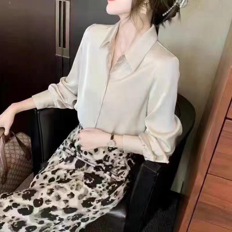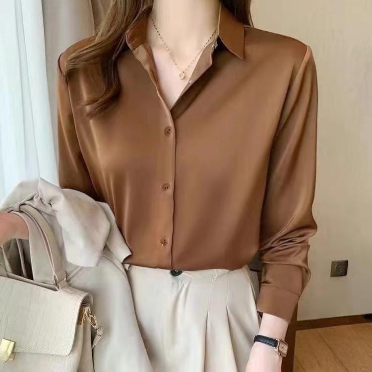 事務服 長袖 通勤 前開き サテン ビ トップス シャツ ブラウス 超目玉商品 オリーブグリーン レッド ブルー ローズ ホワイト ブラック ブラウン シャンペン パープル ピンク L XL 2XL 3XL 4XL 5XL