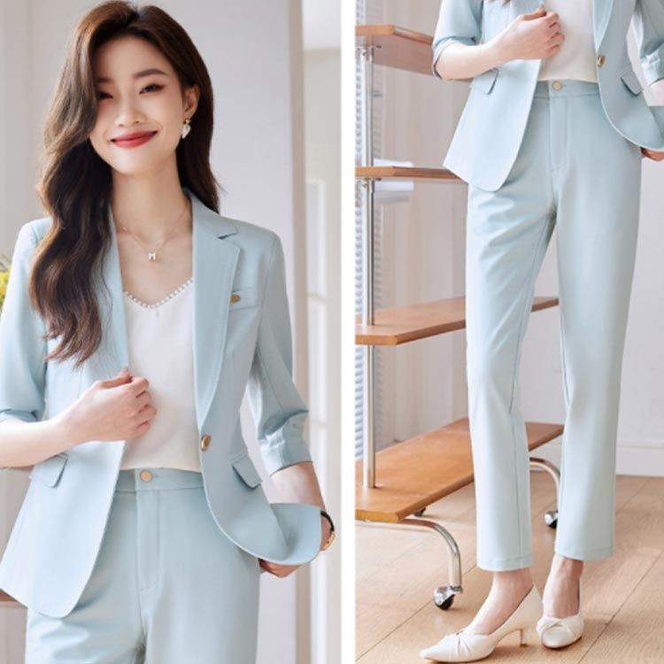 アップ 大人カジュアル 仕事 パンツス レディースファッション 通販 ブラック/上下セット オフホワイト/上下セット ベビーブルー/上下セット キャメル/上下セット S M L XL 2XL 3XL 4XL