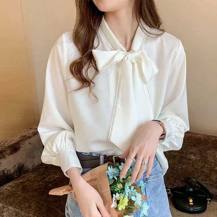 シアースリーブ ドッキングシャツ ボウタイシャツブラウス