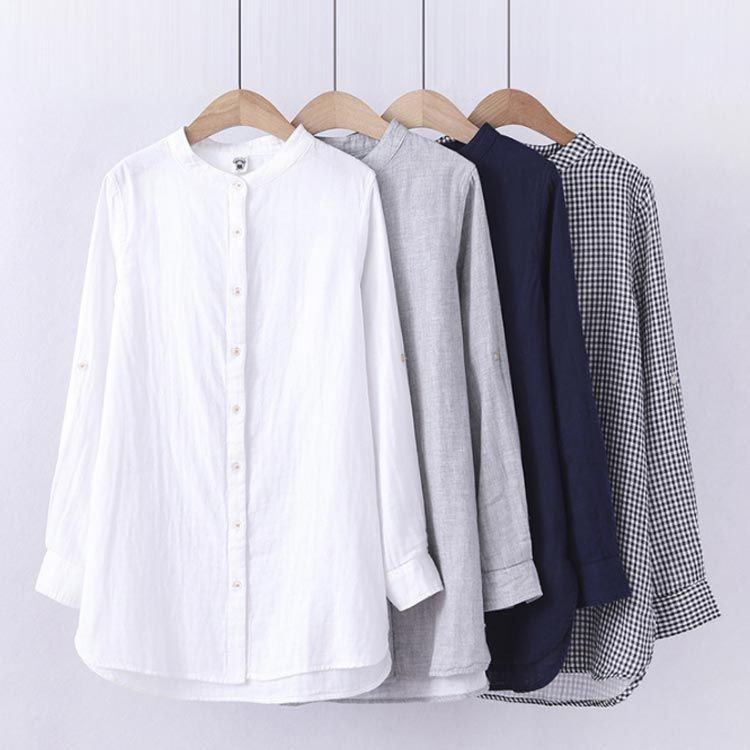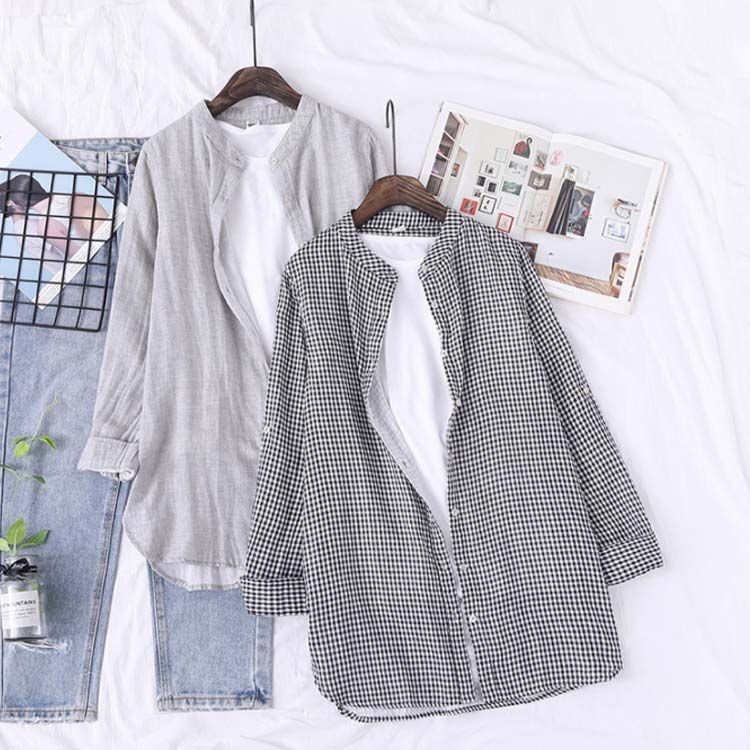 ゆったり 無地 ホワイトシャツ チュニ トップス シャツ ブラウス 新登場! ホワイト グレー ネイビー チェック S M L XL