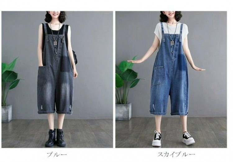 ミニサロペット ワイドパンツ フレアー レディースファッション 新作 スカイブルー ブルー M L XL 2XL
