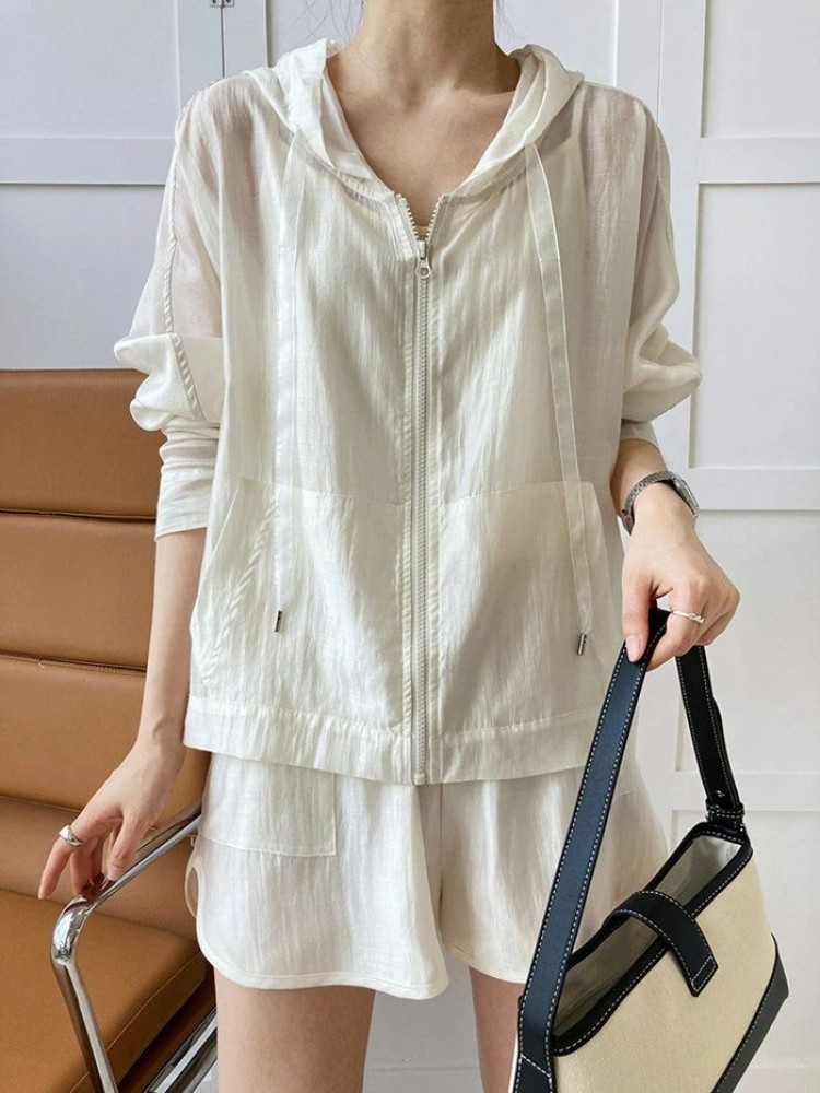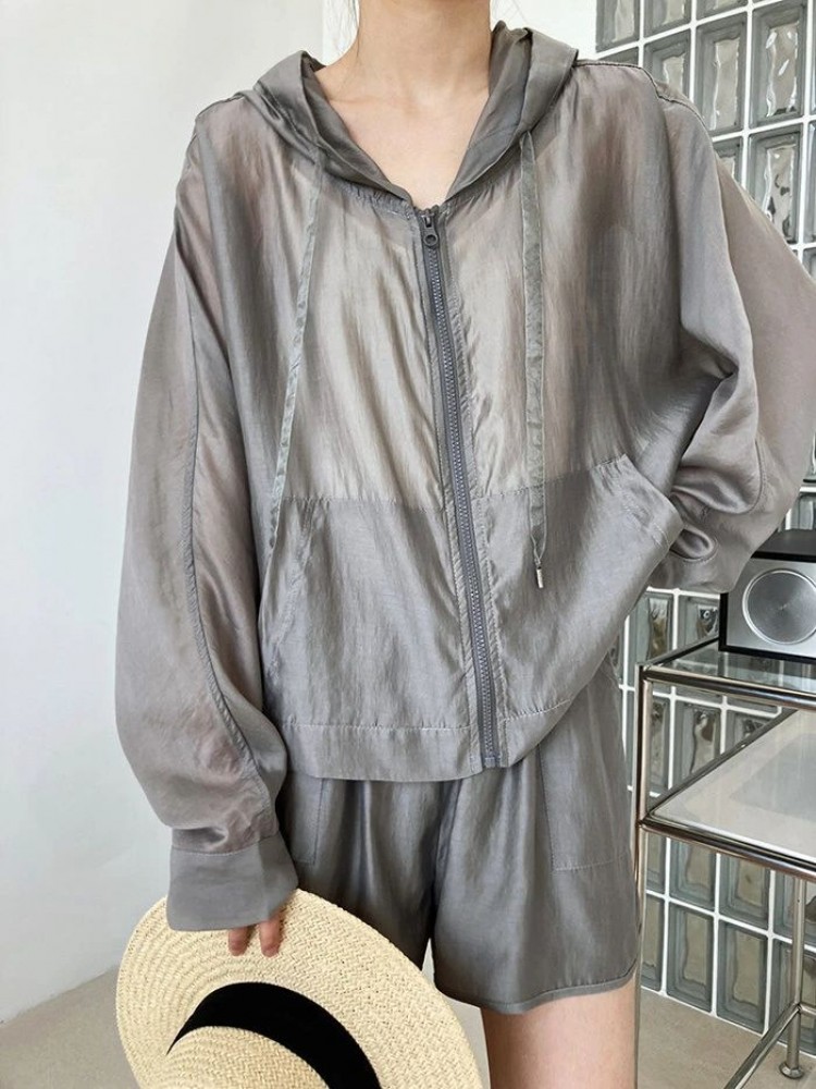 フードパーカー 紫外線対策 長袖薄手パ レディースファッション 続々入荷中 グレー アイボリー M L