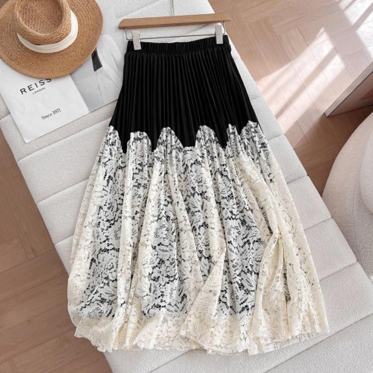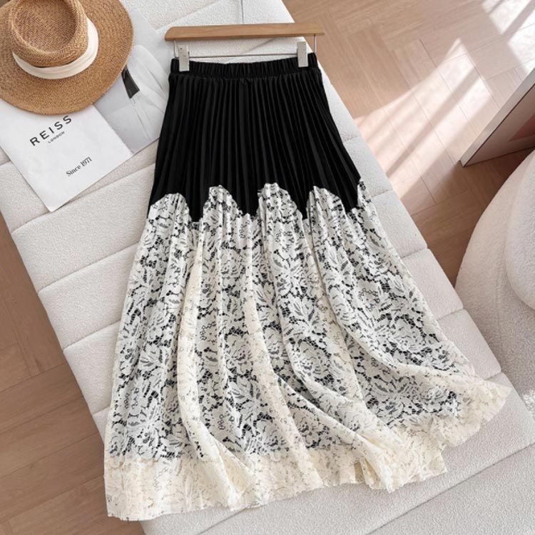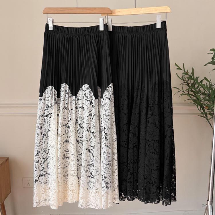 レース切り替え プリーツスカート ロン ボトムス スカート 人気 カラー1 カラー2
