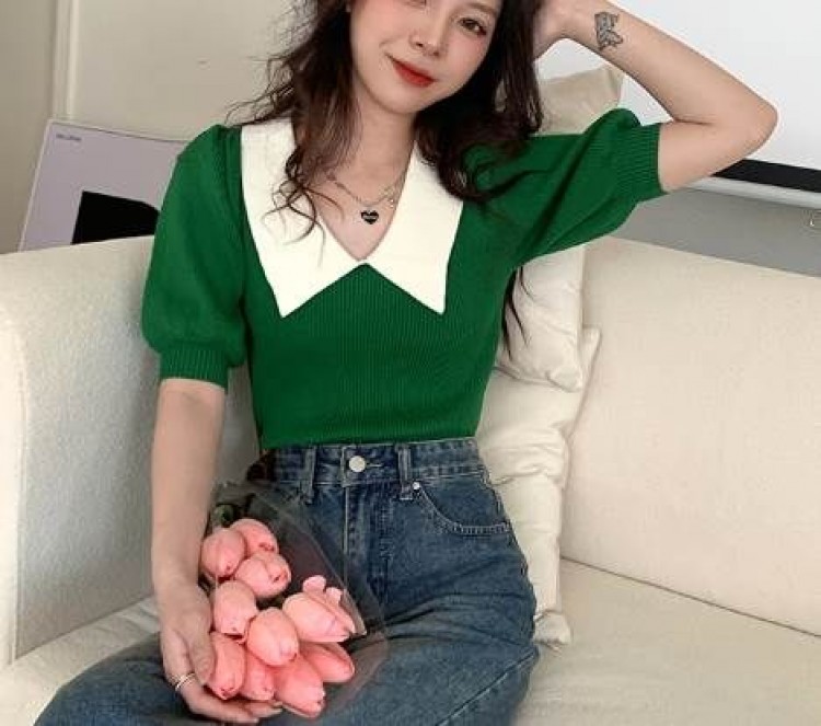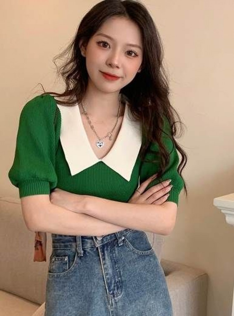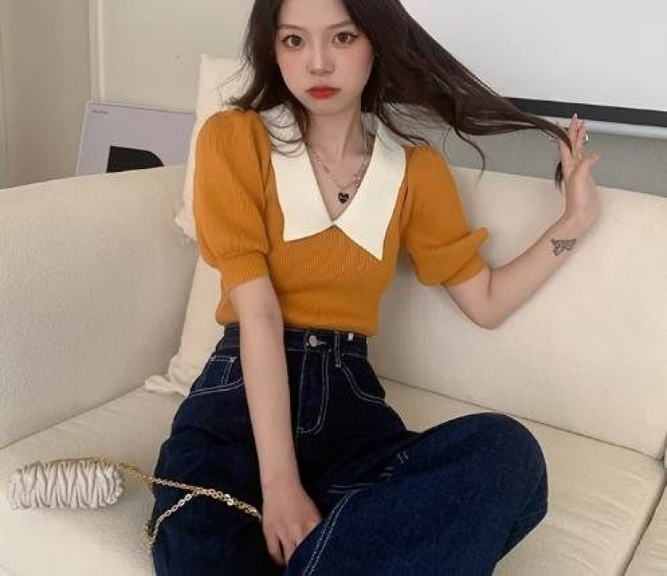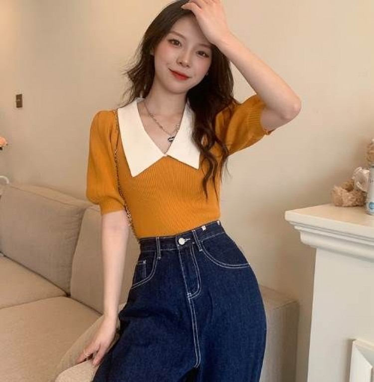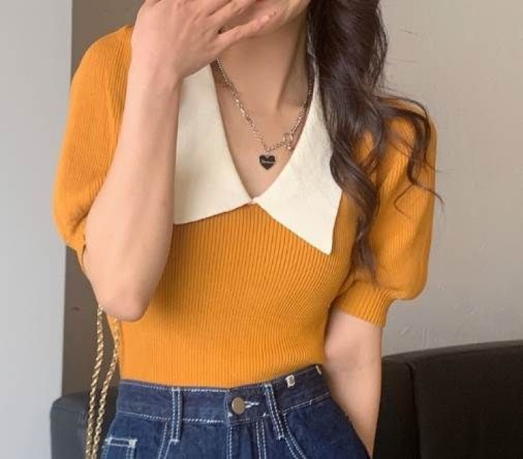 上品 レディース パフスリーブ イエロ トップス Tシャツ カットソー 特集 ブラック ホワイト レトロイエロー ヴィンテージグリーン