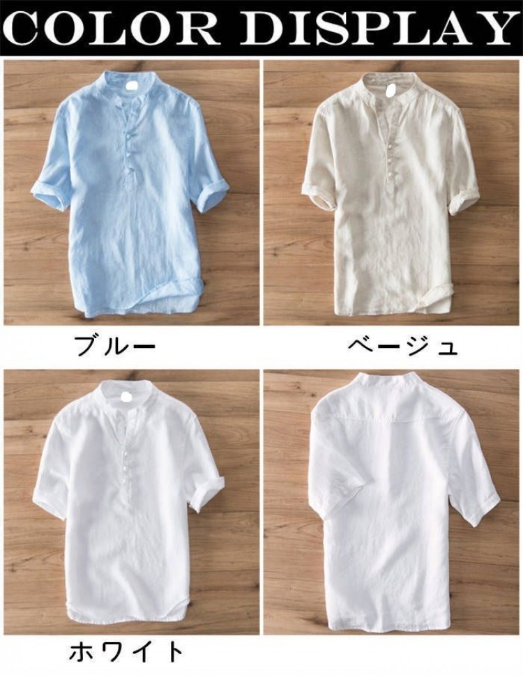 メンズ ゆったり風 綿麻 半袖Tシャツ リネンTシャツ カジュアルTシャツ 夏物 スタンドカラー T- 新品 シンプル ヘンリーネック 無地 立ち襟 Tシャツ ス