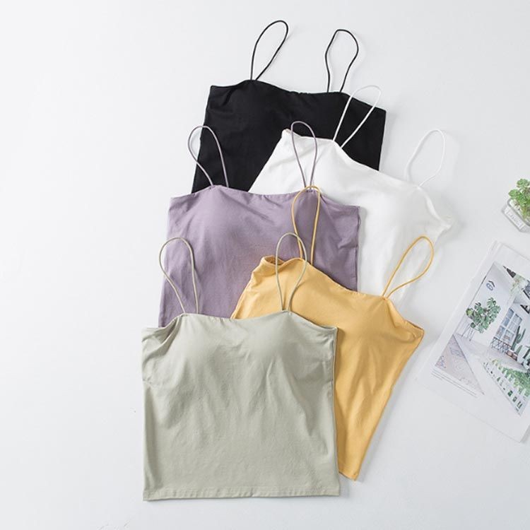 パッド付 カップ付き 綿混 キャミソー レディースファッション 早い者勝ち ホワイト パープル イエロー ブラック グリーン S M L XL