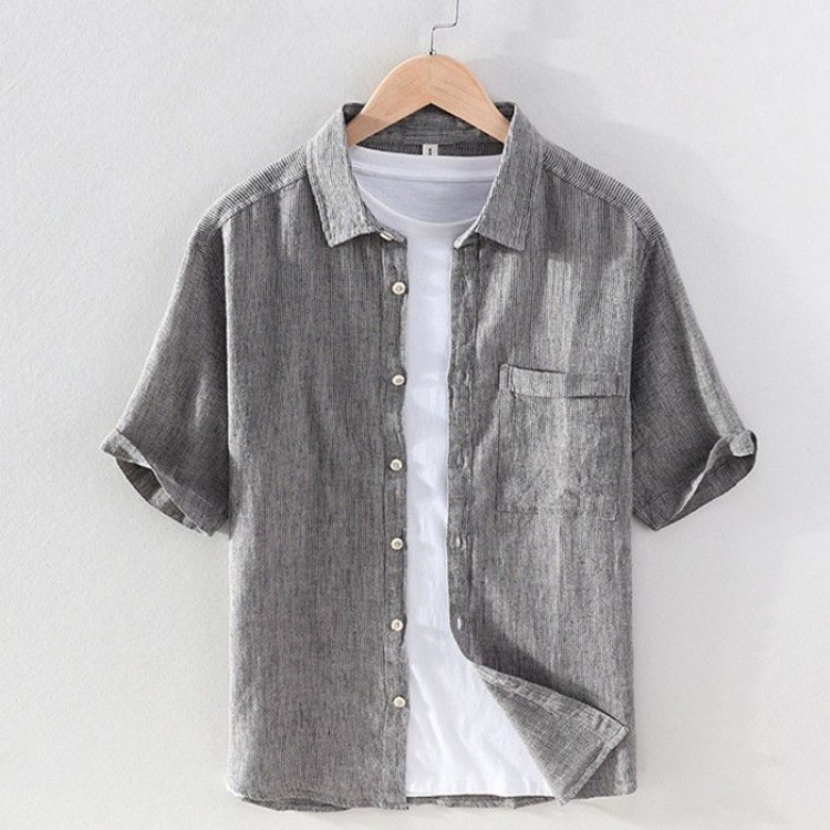 開襟 新品 普段着 薄地 メンズシャツ シャツ M-3XL リネンシャツ 原宿系 ストライプ柄 ゆったり風 ス 五分袖シャツ カジュアルシャツ シンプル 綿麻 涼しい カーディガン 春夏物