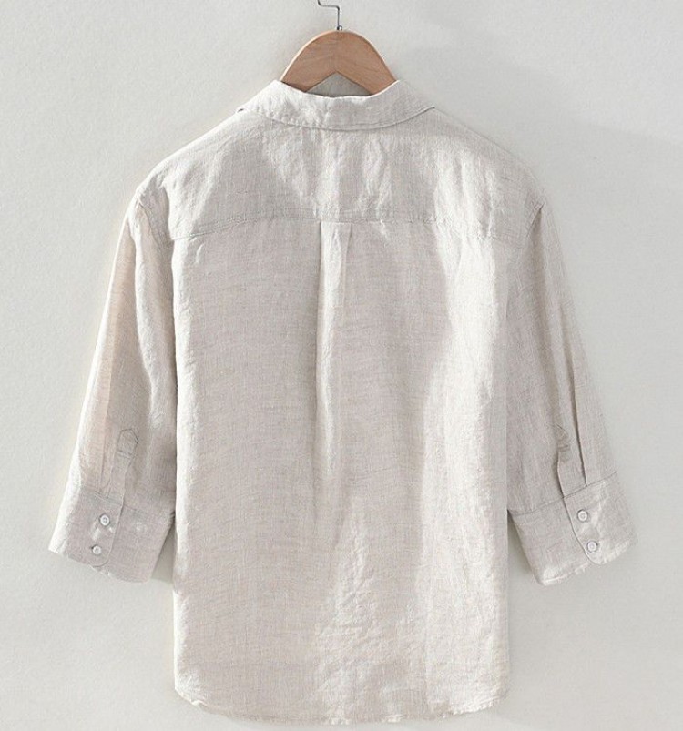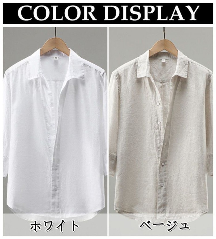 M-3XL 就活 無地 薄地 カジュアルシャツ ス シャツ 亜麻シャツ 新品 凉感 七分袖シャツ 夏物 通気 仕事 リネンシャツ ファッション シンプル メンズシャツ 通勤