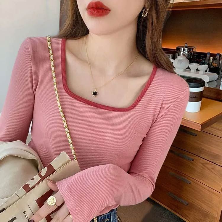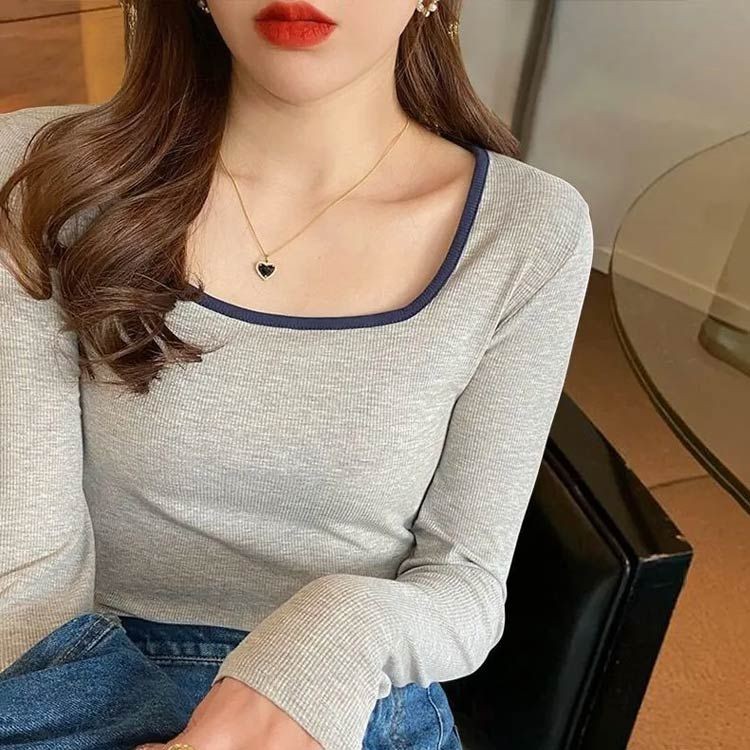 配色 スクエアネック 長袖 Tシャツ レディースファッション 特集 裏起毛1 裏起毛2 裏起毛3 裏起毛4 裏起毛5 M L XL 2XL 3XL