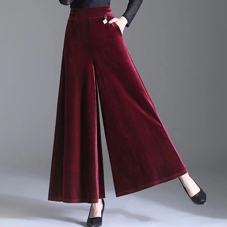 ベロアタッチ ガウチョパンツ フレアパ ボトムス パンツ 超目玉商品 ブラック レッド ブラウン ピンク M L XL 2XL 3XL 4XL 5XL