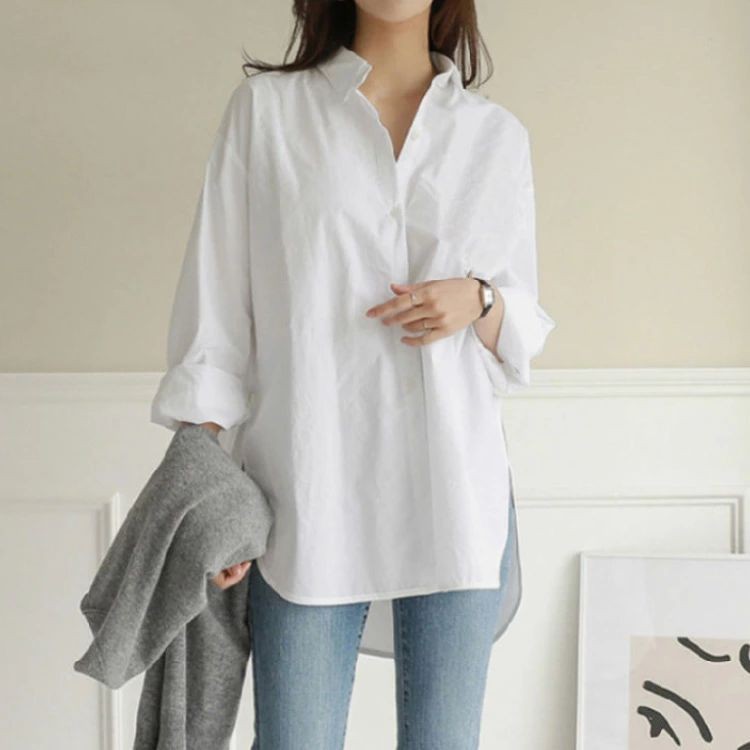 シャツ レディース 長袖 ゆったり 大 レディースファッション 早い者勝ち ホワイト ブラック ブルー ネイビー S M L XL 2XL 3XL 4XL 5XL