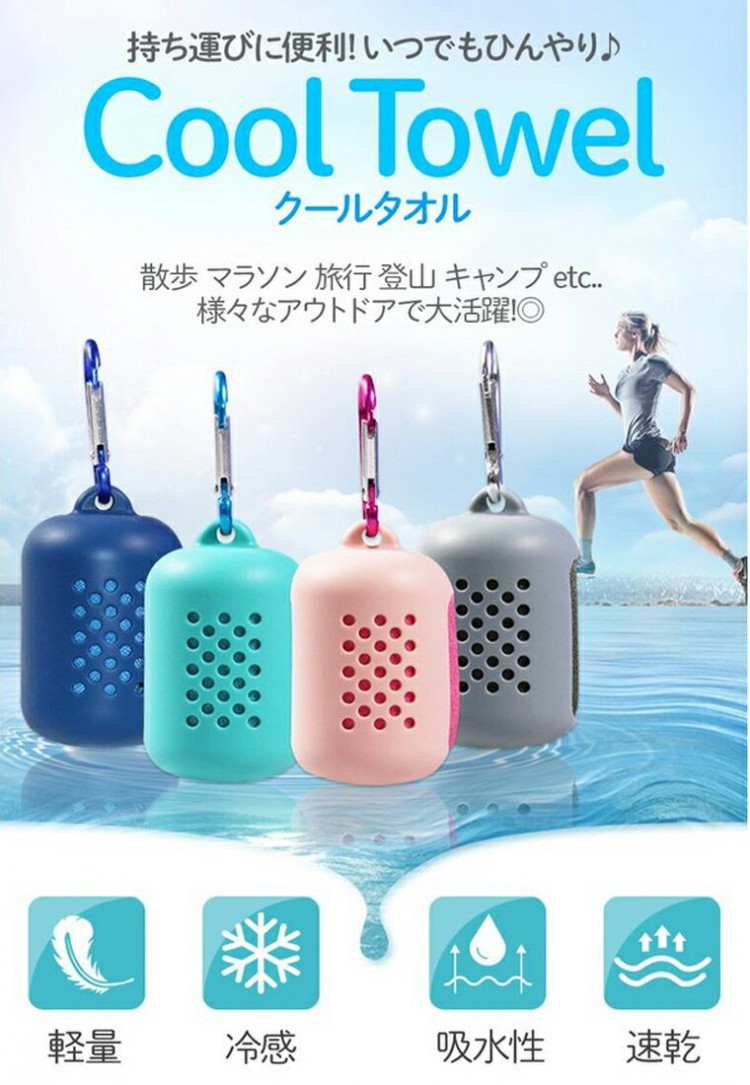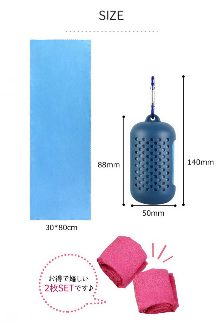 クールタオル ケース付き 2枚セット タオル 冷却タオル 特集 グリーン×2 ブルー×2 ピンク×2 パープル×2 グレー×2