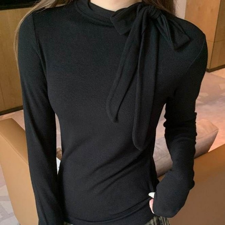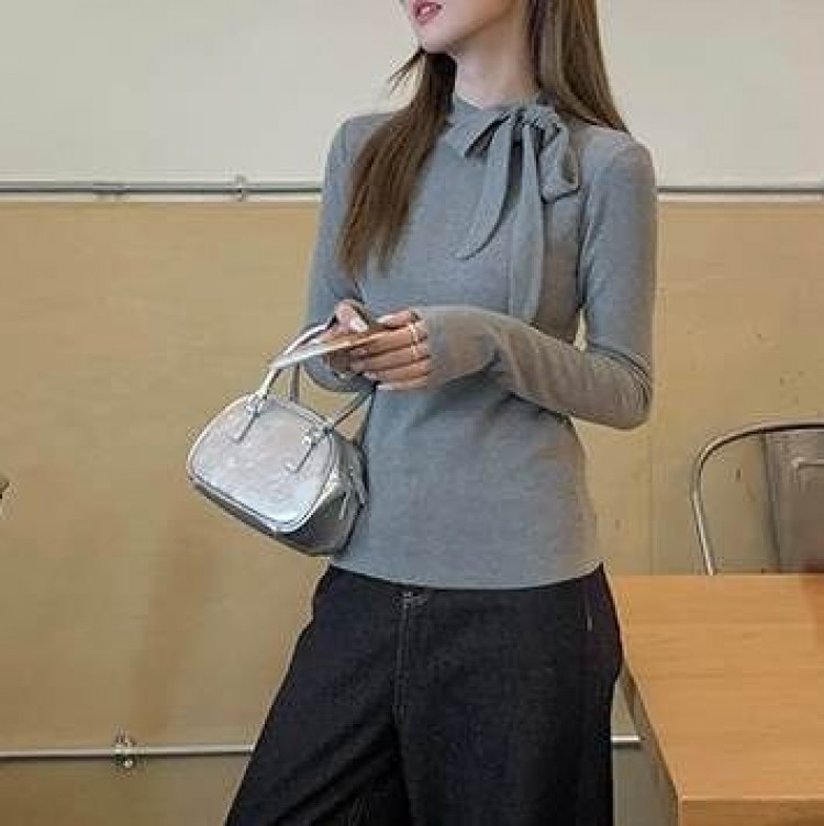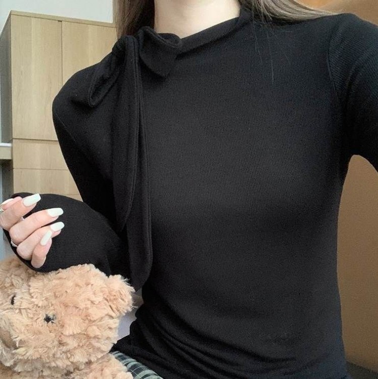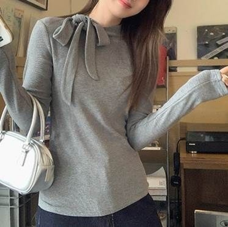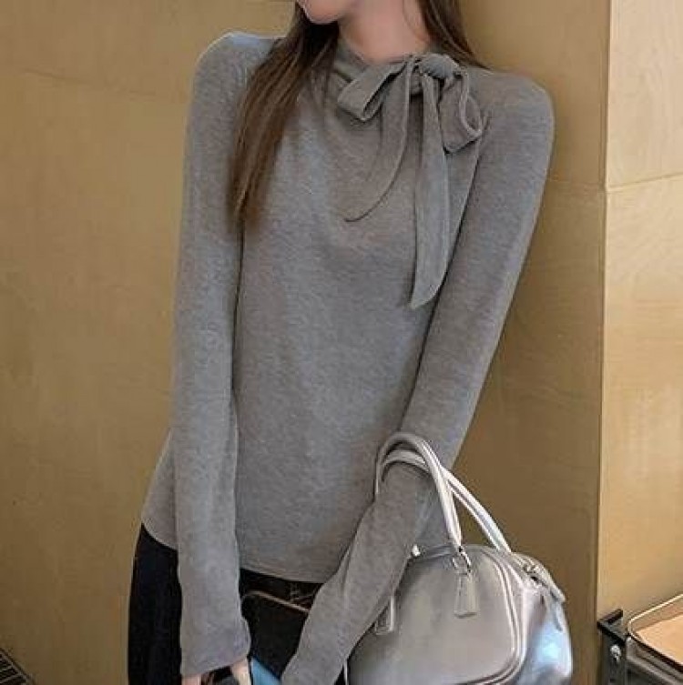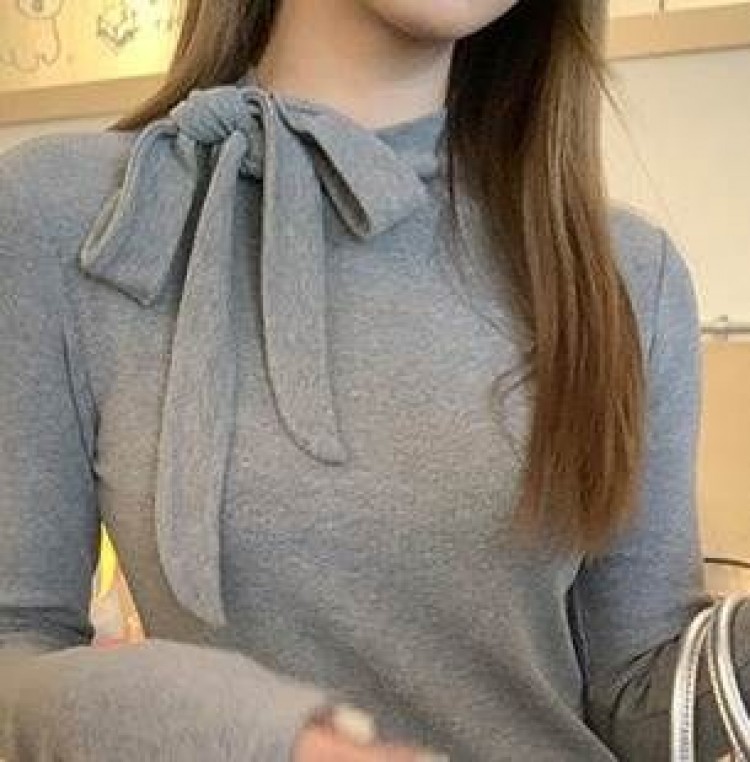 りぼんタイ 長袖 レディース ガーリー レディースファッション 早い者勝ち ブラック グレー S M L XL