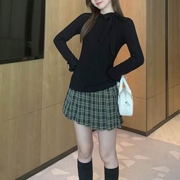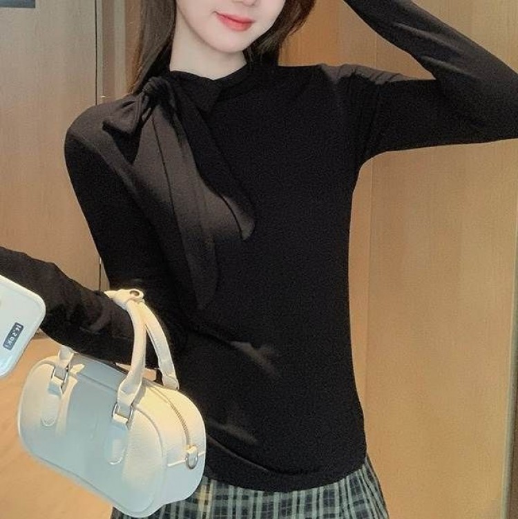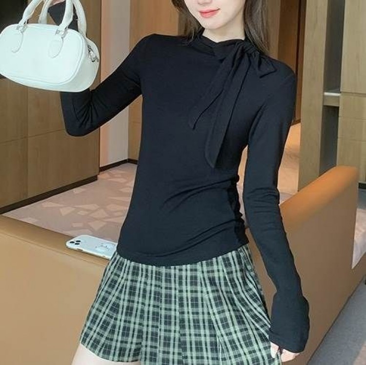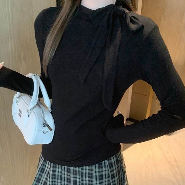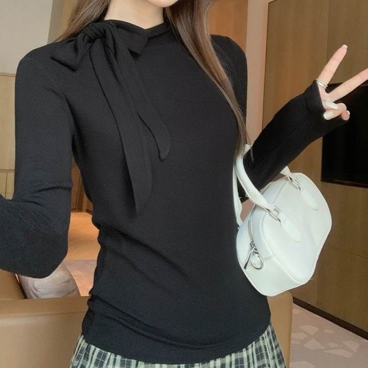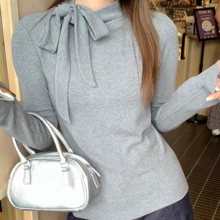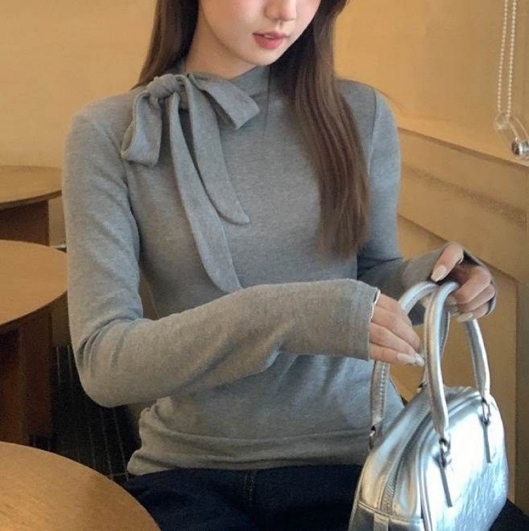 りぼんタイ 長袖 レディース ガーリー レディースファッション 早い者勝ち ブラック グレー S M L XL