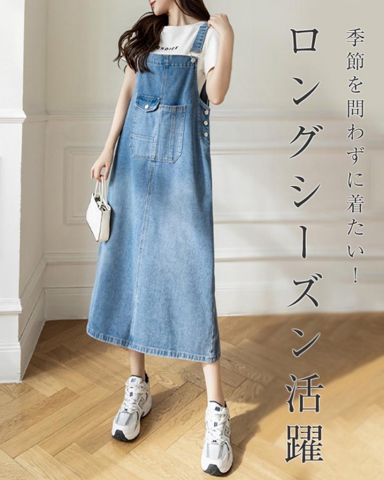 ジャンパースカート デニム サロペット ライトブルー ブルー ダークグレー S M L XL 2XL 3XL
