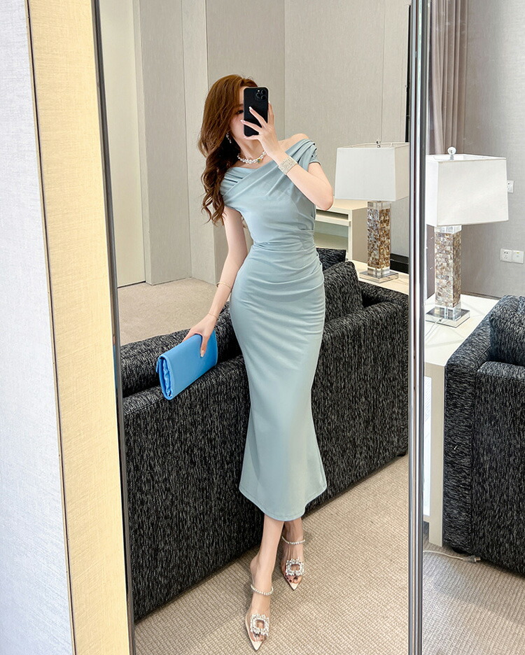 タイトワンピ オフショルダー マーメイ レディースファッション 豊富な品揃え ブルー ブラック Sサイズ Mサイズ Lサイズ XLサイズ