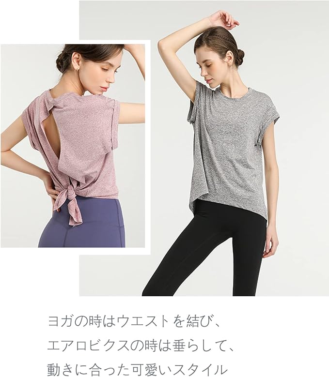 ヨガウェア レディース トップス 半袖 トップス Tシャツ カットソー 特集 グレー ピンク S M L