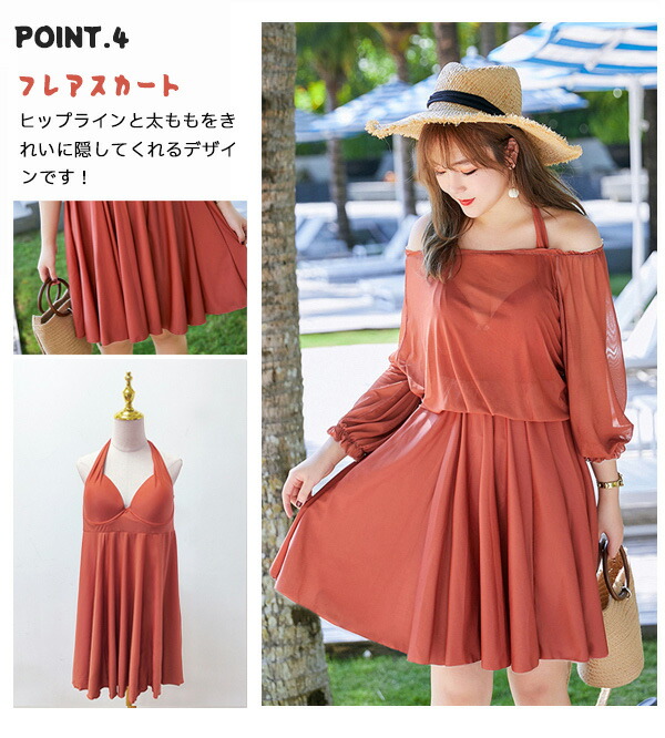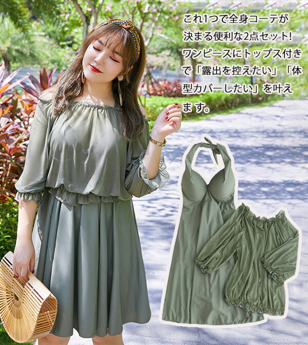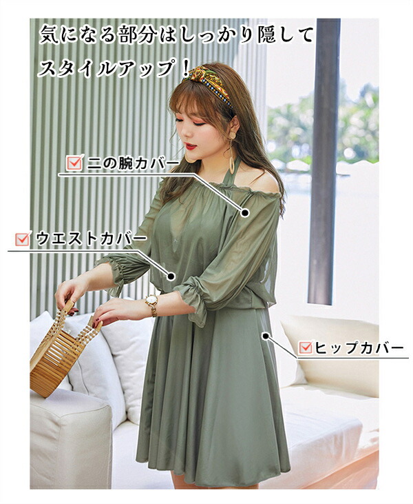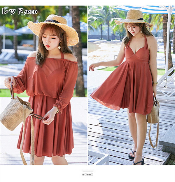 水着 大きいサイズ体型カバー 服みたい レディースファッション 特集 グリーン レッド 2L 3L 4L 5L 6L