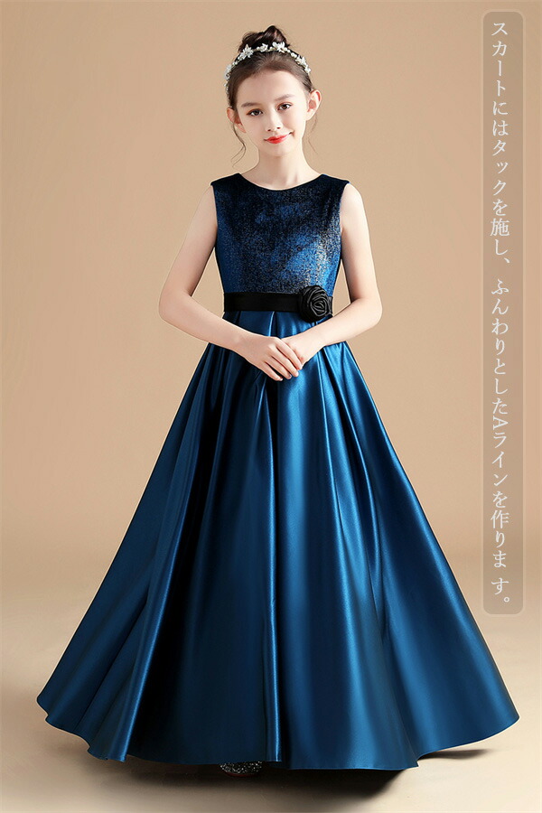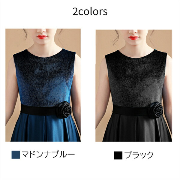 ピアノ発表会 ドレス 中学生 ロングワ キッズ ベビー マタニティ 新作 マドンナブルー ブラック 110 120 130 140 150 160