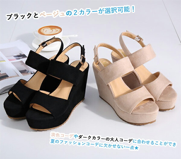 レディース ウェッジソールサンダル 厚 靴 新作 ブラック ベージュ 20.5 21.0 21.5 22.0 22.5 23.0 23.5 24.0 24.5 25.0 25.5 26.0 26.5 27.0