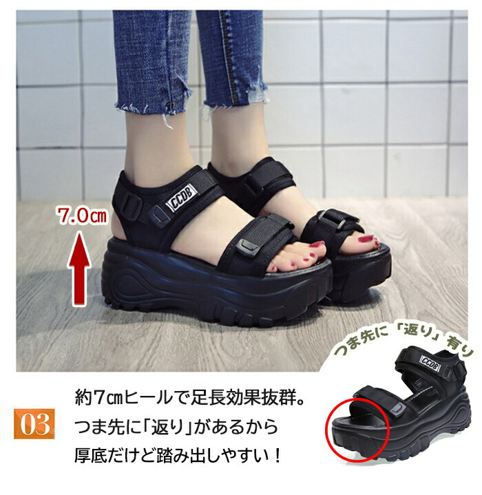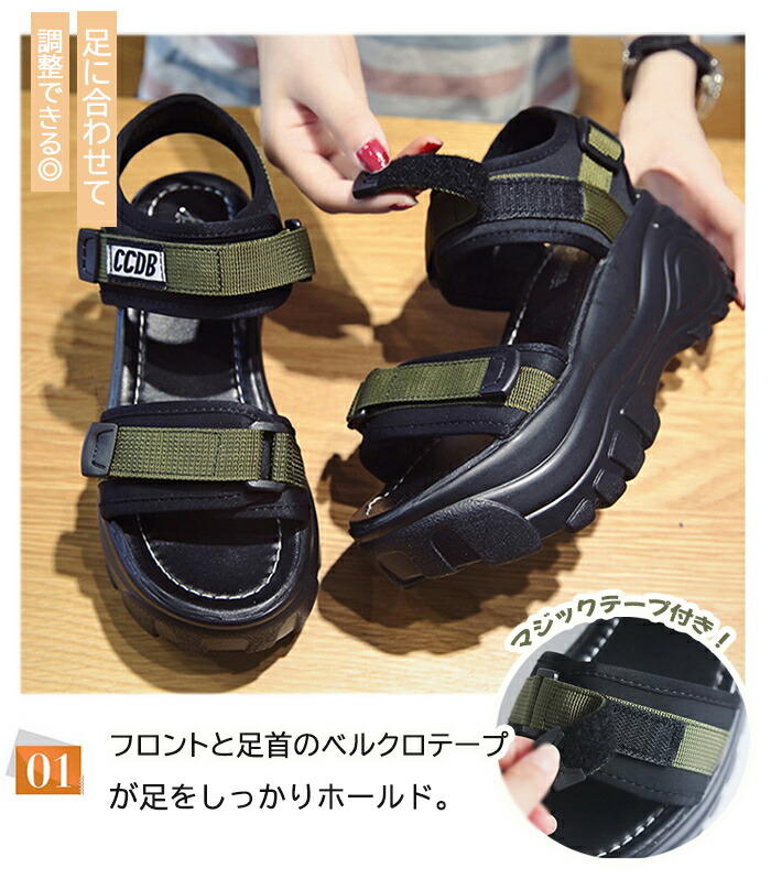 スポーツサンダル 厚底7cm レディー レディース靴 サンダル スポーツサンダル 人気 ブラック カーキ 24.5 25.0 21.5 22.0 22.5 23.0 23.5 24.0