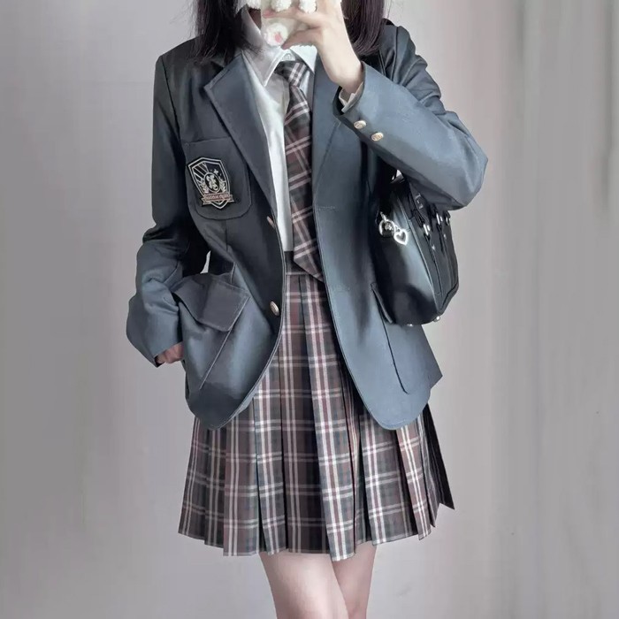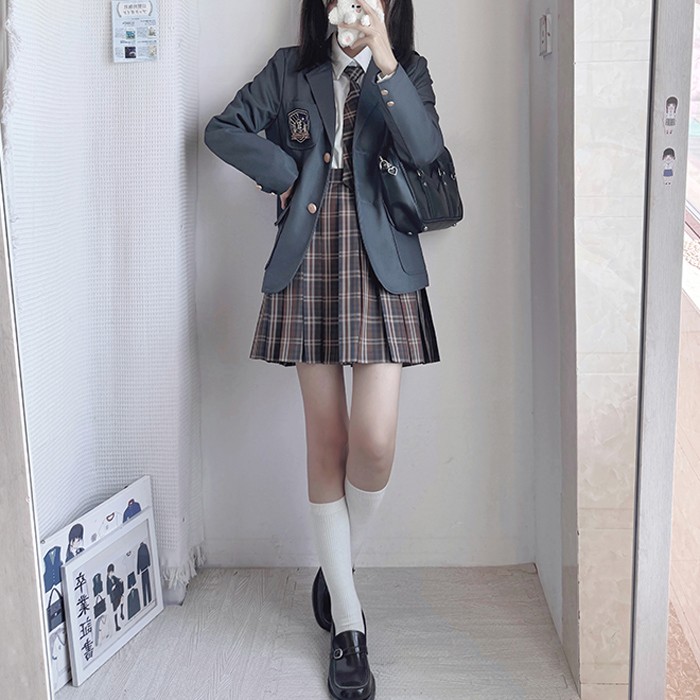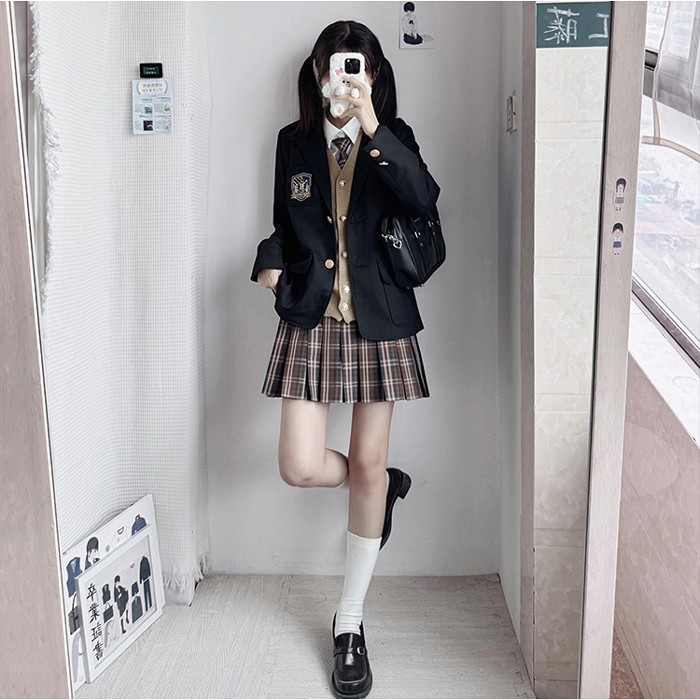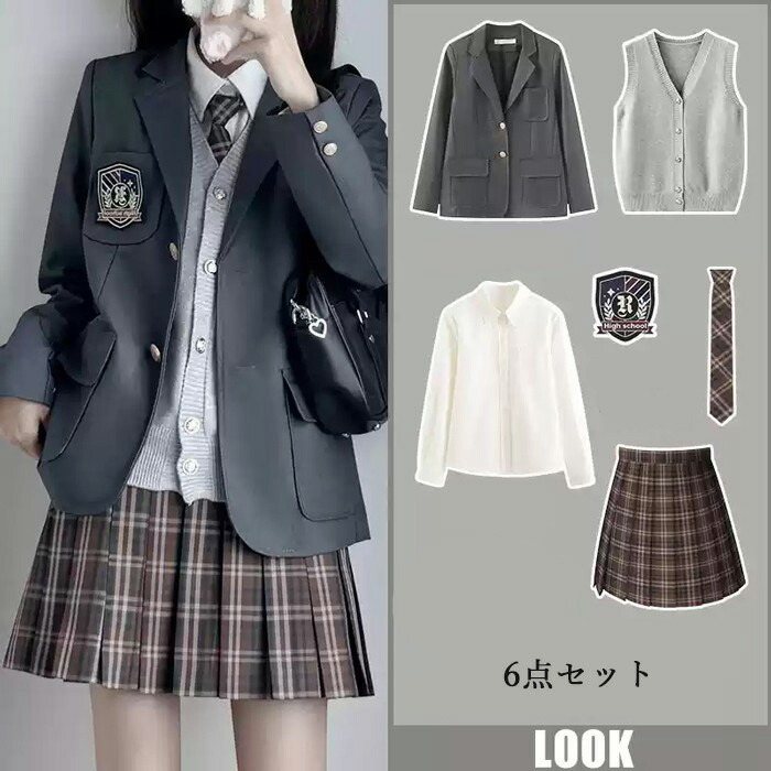 制服 ブレザー スカート セット ネク トップス ニット セーター ニットキャミソール 人気 ブラウン グレー ブラック XS S M L XL