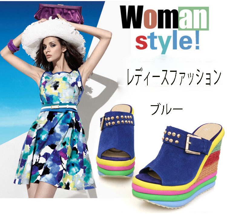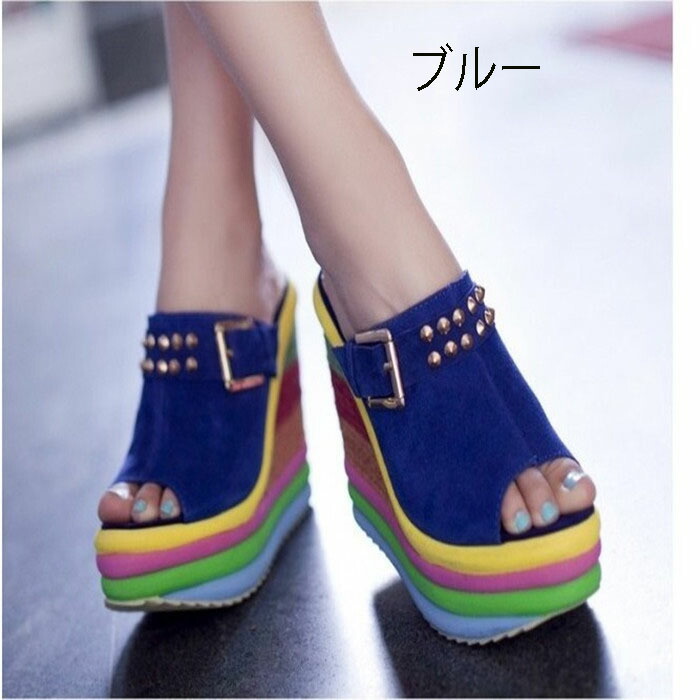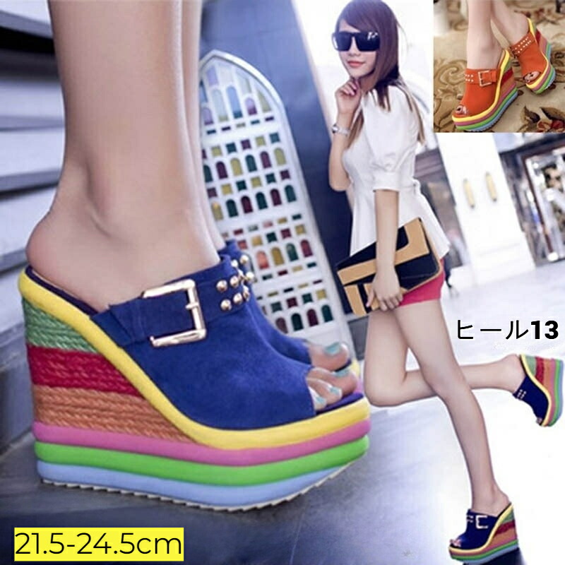 サボサンダル ミュール 厚底 ウェッジ 靴 続々登場 ブルー オレンジ 24.5 21.5 22 22.5 23 23.5 24