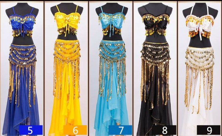 9色 上下セット+ 腰巻き 3点セット 体操 ダンス ベリーダンス 衣装セット 人気 1 2 3 4 5 6 7 8 9