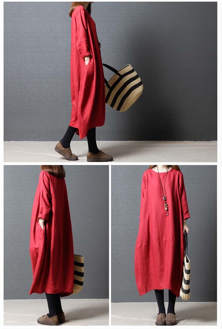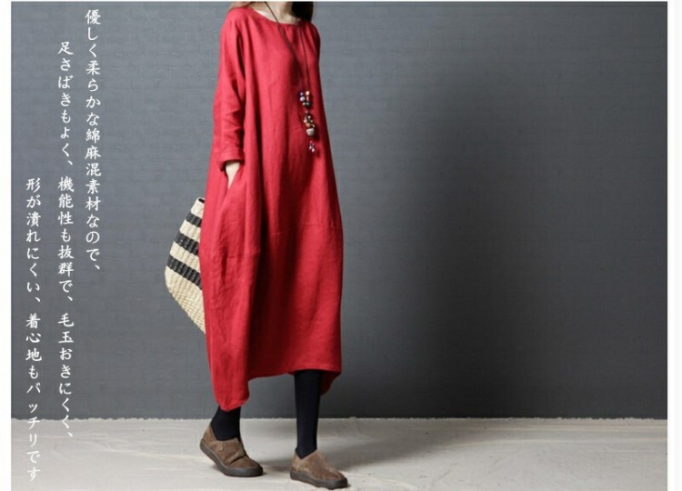 ワンピース 春 長袖 レディース ロン 赤 黒 緑 M L XL XXL