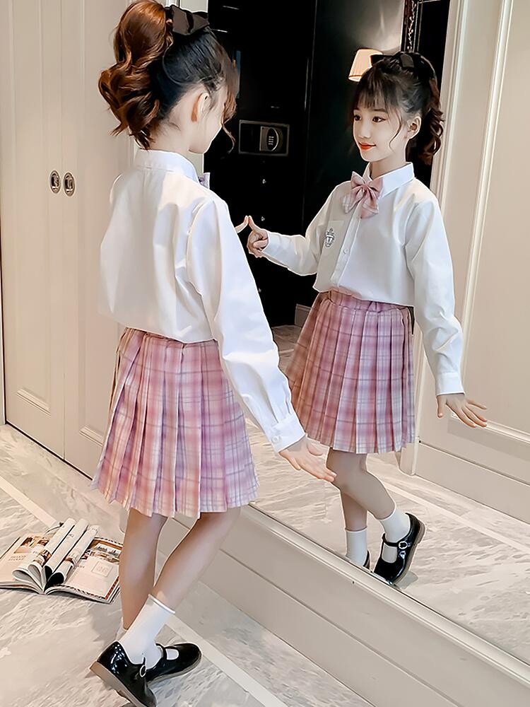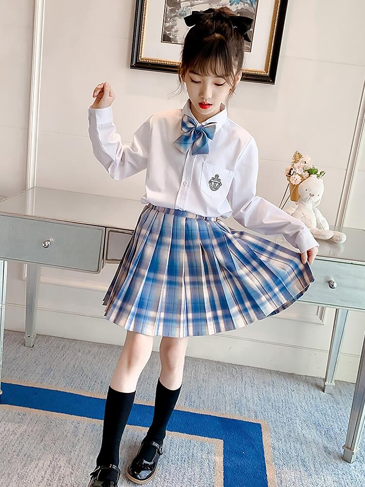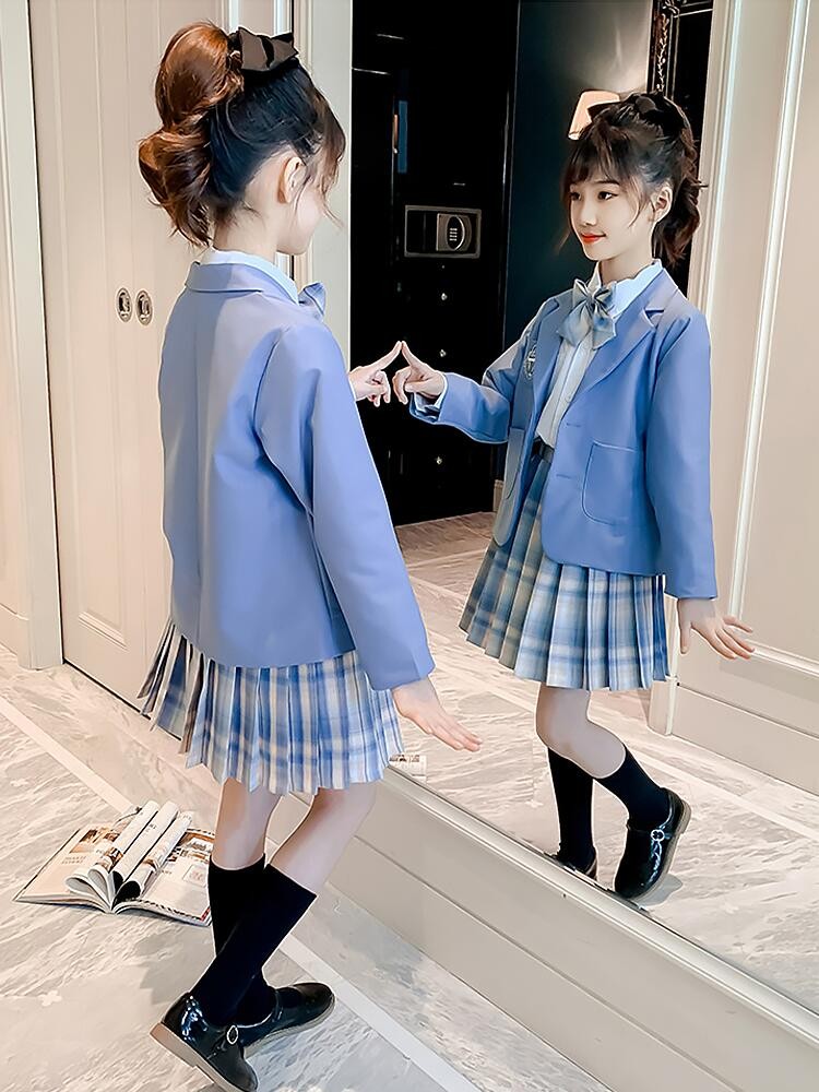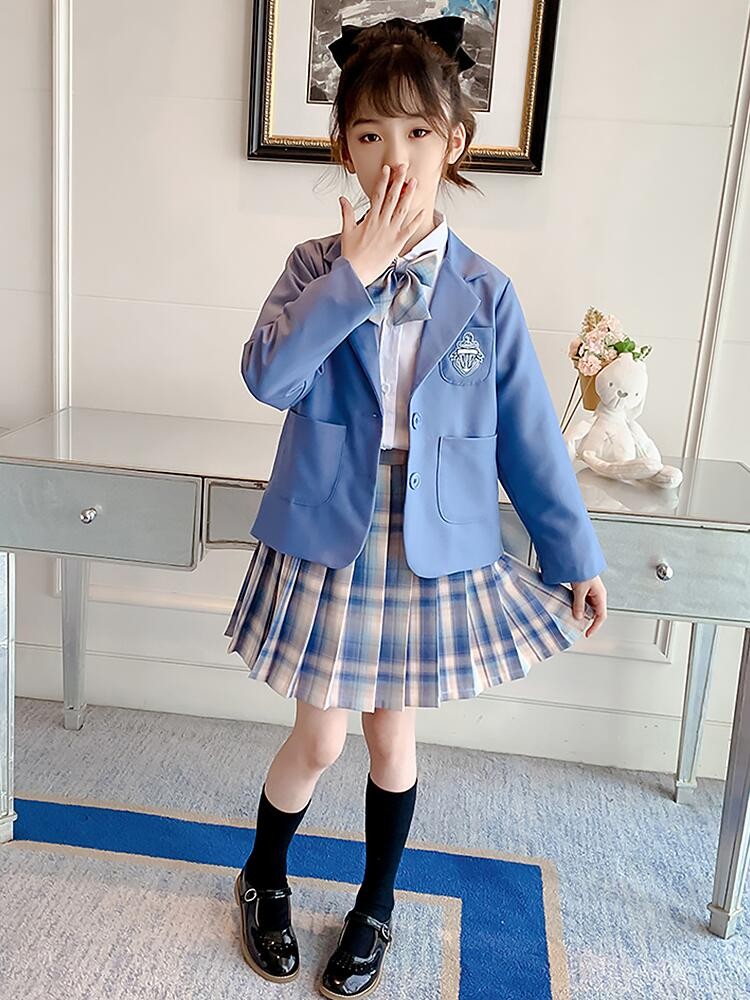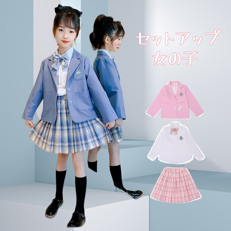 キッズ ダンス衣装 セットアップ 女の キッズ ベビー マタニティ 豊富 ブルー ピンク シャツセット+スカート ジャケット+シャツセット+スカート