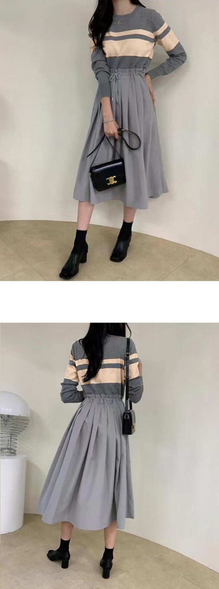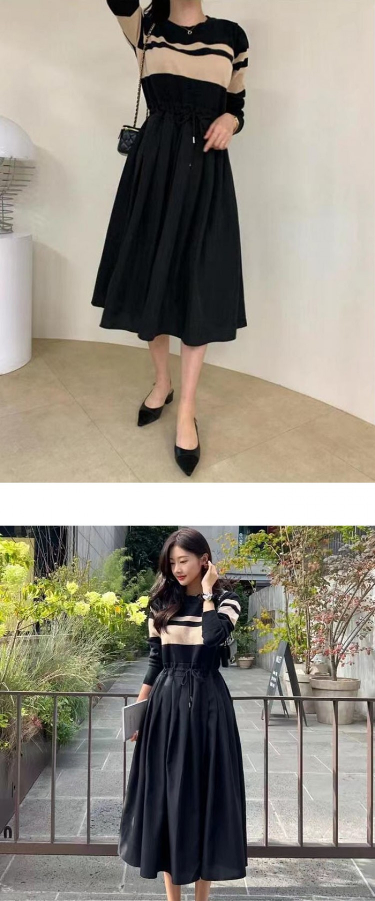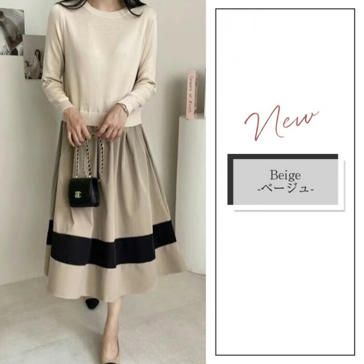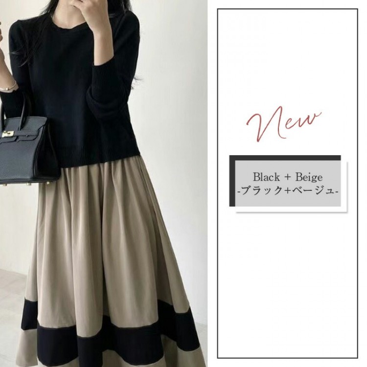 ワンピース きれいめ 秋冬 ロング 春 無地-黒 チェック-グレー (new)ブラック+ベージュ (new)ベージュ (new)チェックー黒 (new)ブラック 【新色】ブラック(ウエスト調整可) 【新色】グレー(ウエスト調整可)