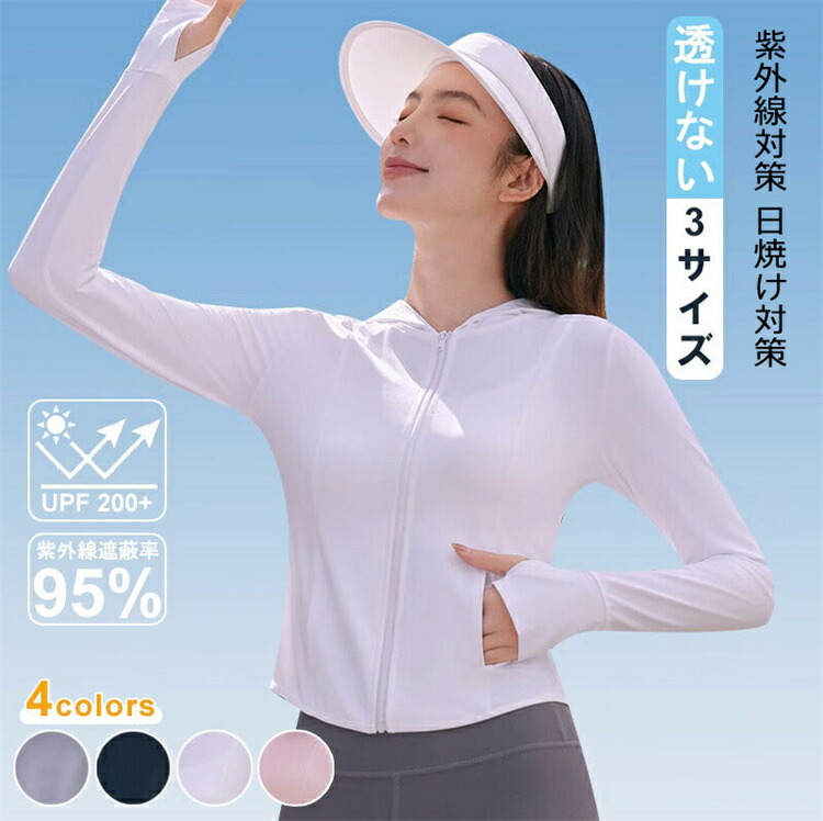 UV パーカー 涼しい uv カット トップス パーカー 新作 S M L ピンク ホワイト グレー ブラック