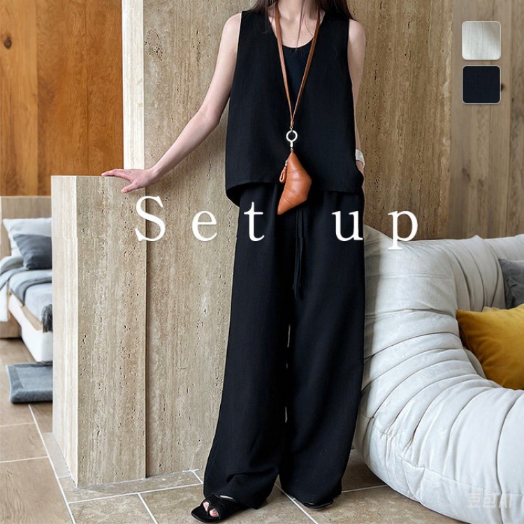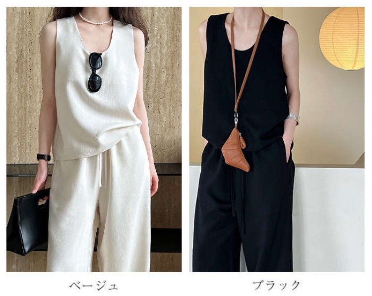 セットアップ リネン 麻 レディース スーツ セットアップ パンツスーツ 人気 ベージュ ブラック M L