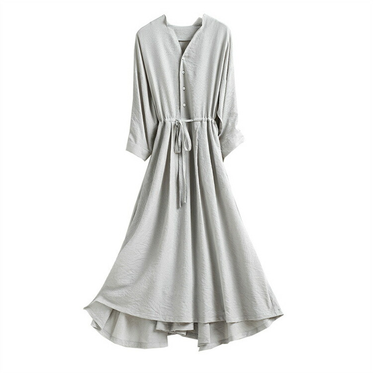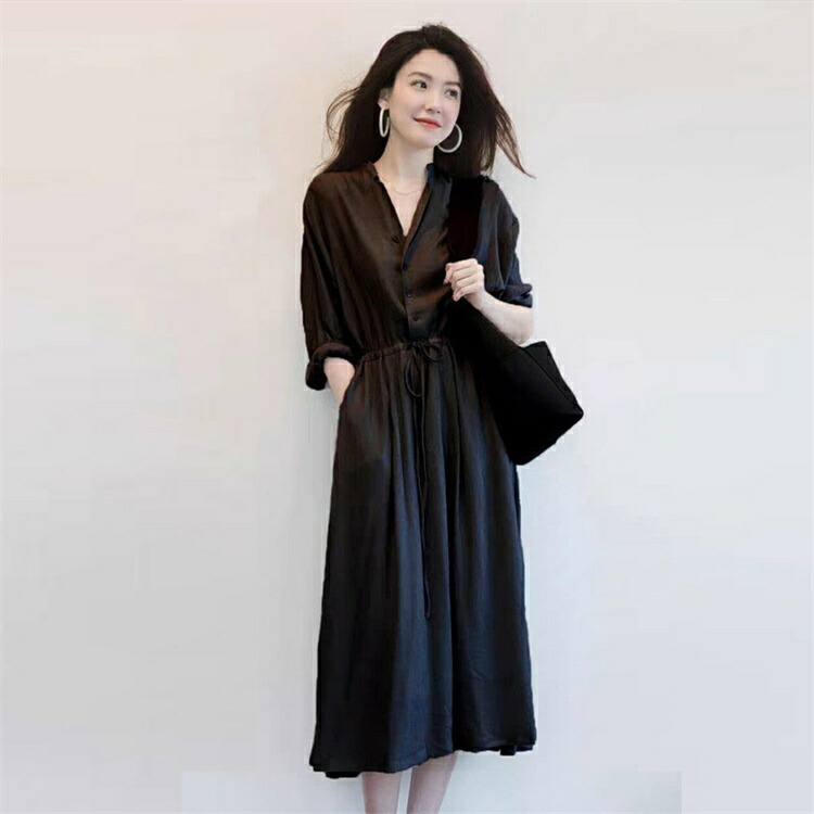 ロング ワンピース 長袖 きれいめ レ グレー ブラック S M L XL 2XL 3XL
