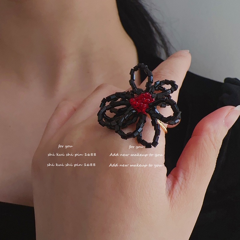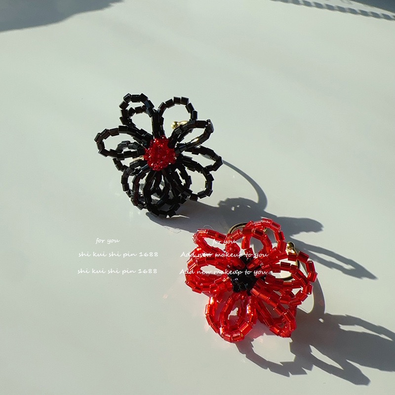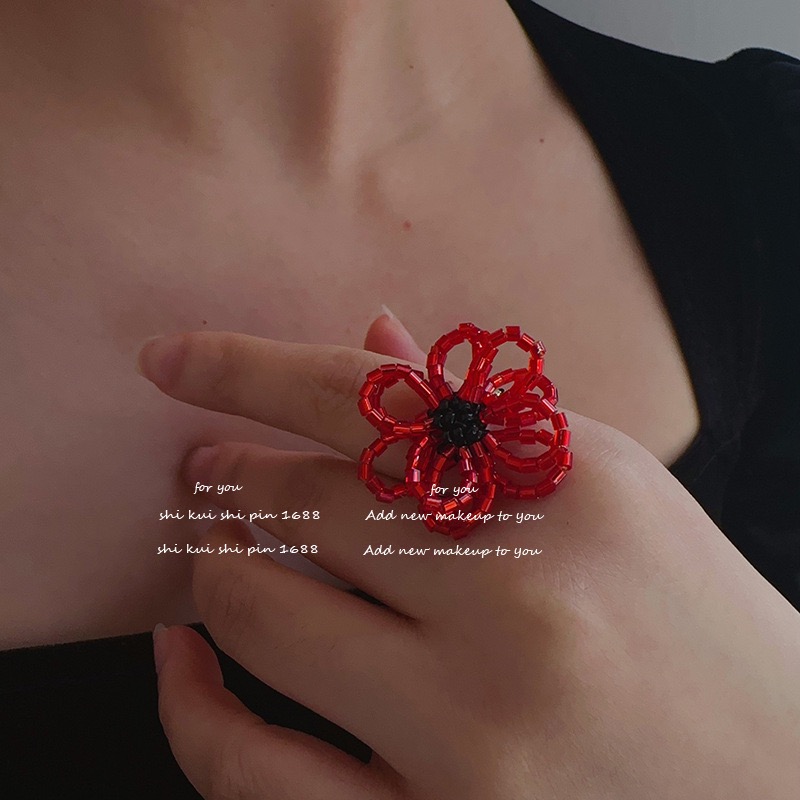 2色展開 存在感抜群 ビーズフラワー レディースジュエリー アクセサリー 指輪 リング 早い者勝ち ブラック レッド