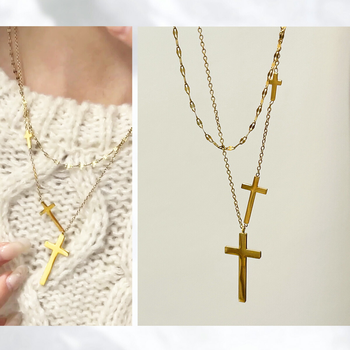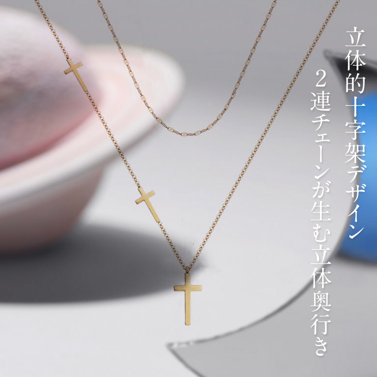 K18コーティング2連ロングネックレスジュエリー アクセサリー レディースジュエリー ネックレス ペンダント