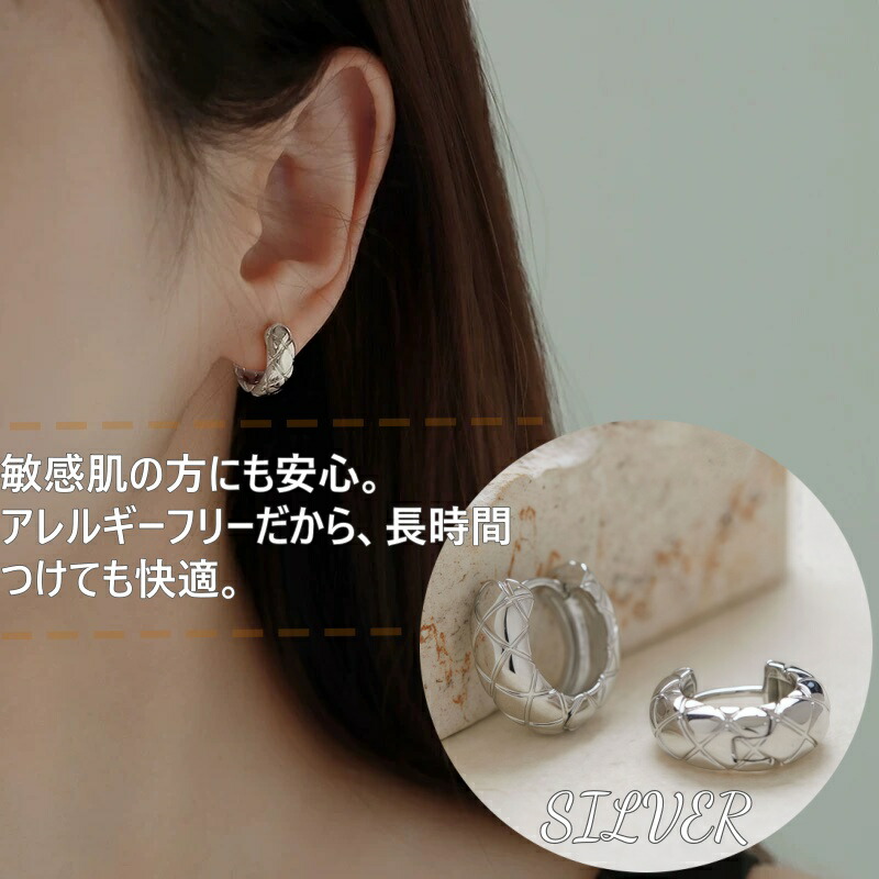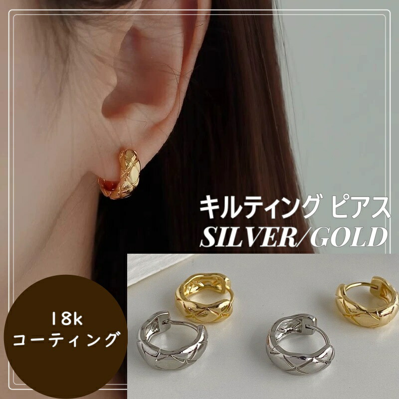 キルティング ピアス フープピアス サージカルステンレス 金属アレルギー アレルギーフリー 18K シルバー ゴールド 大人 上品 きれいめ 可愛い 人気 トレンド プレゼント レディース 高 ギフト