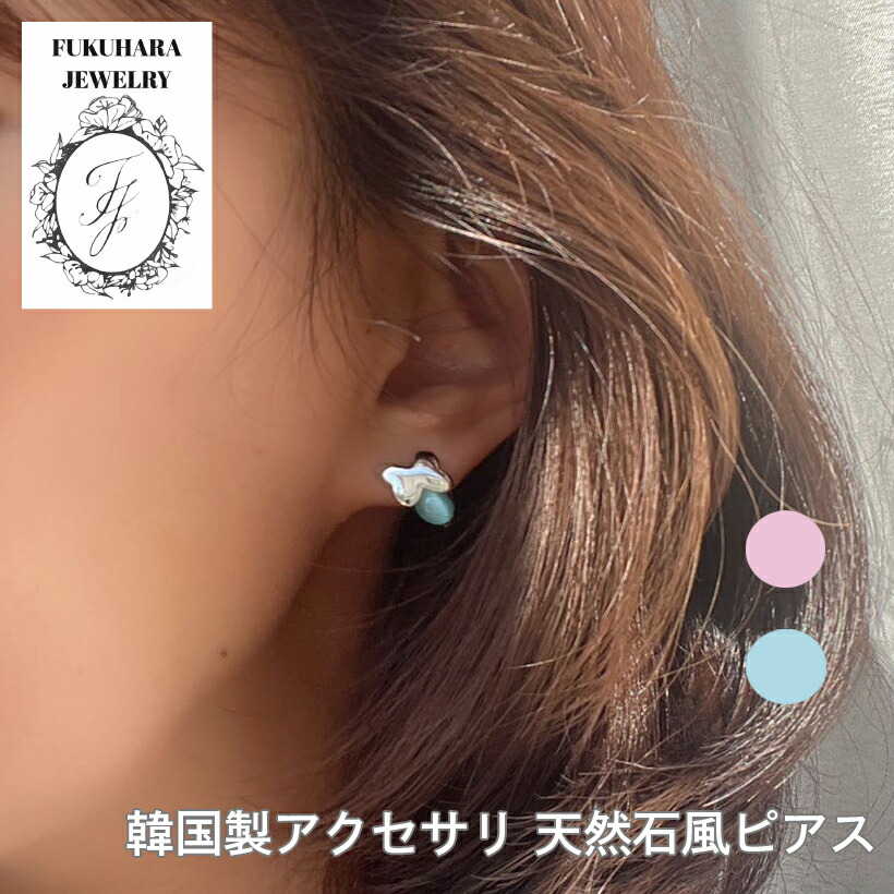 かわいい天然石風 丸玉パールピアス&立 ジュエリー アクセサリー 豊富 PINK BLUE