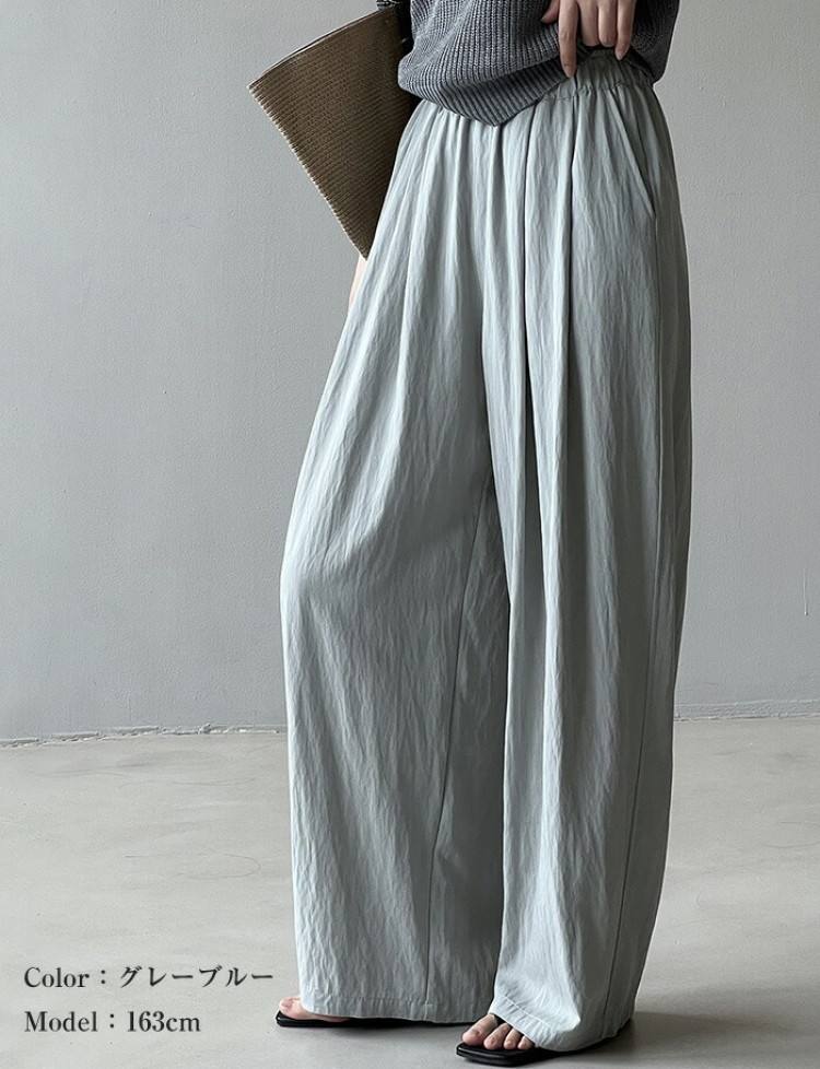 ワイドパンツ レディース きれいめ 春 ベージュ グレーブルー グレーグリーン ブラック M L