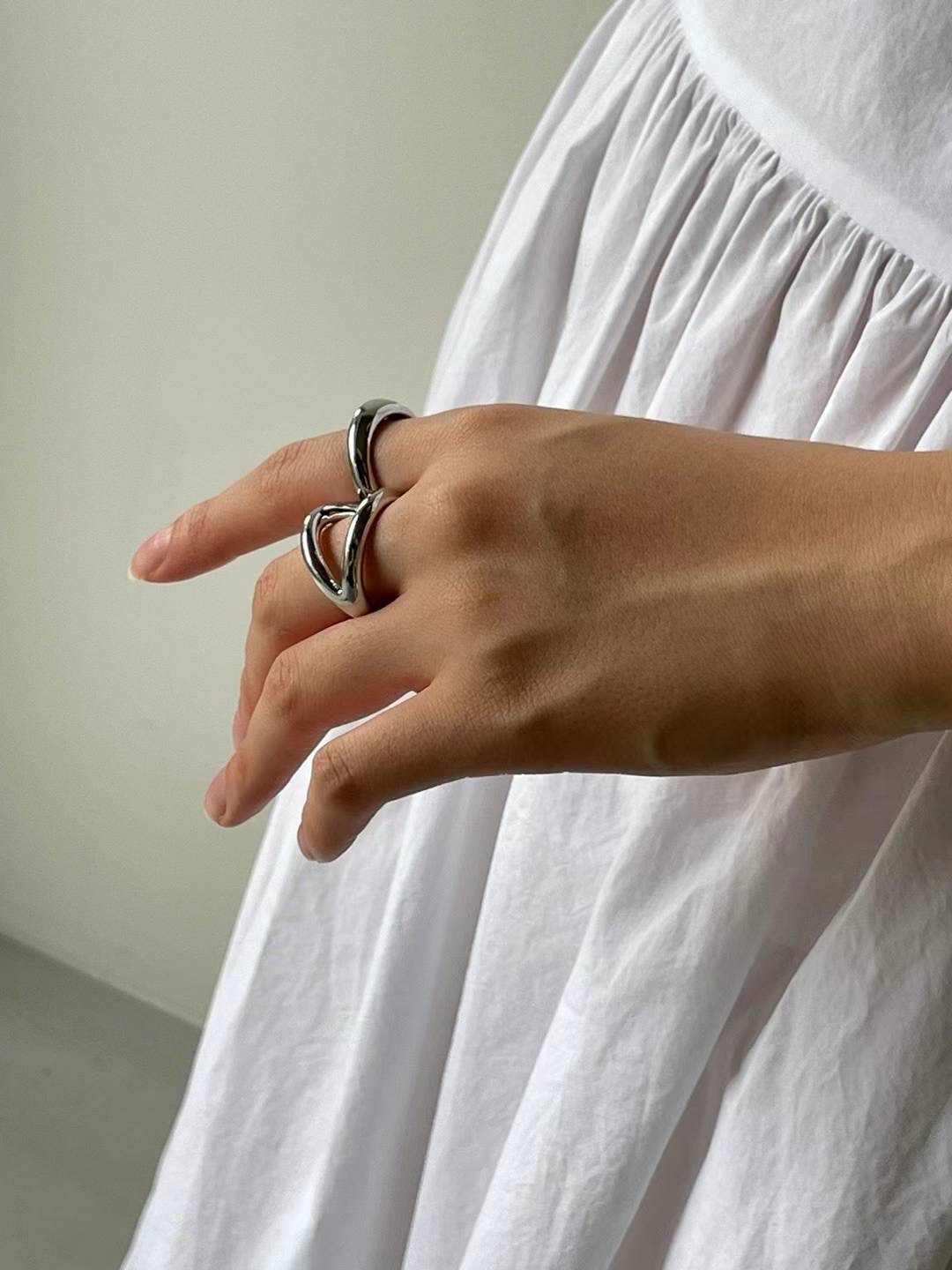 ダブルフィンガーリング レイヤード風デ ジュエリー アクセサリー 豊富 ゴールド シルバー