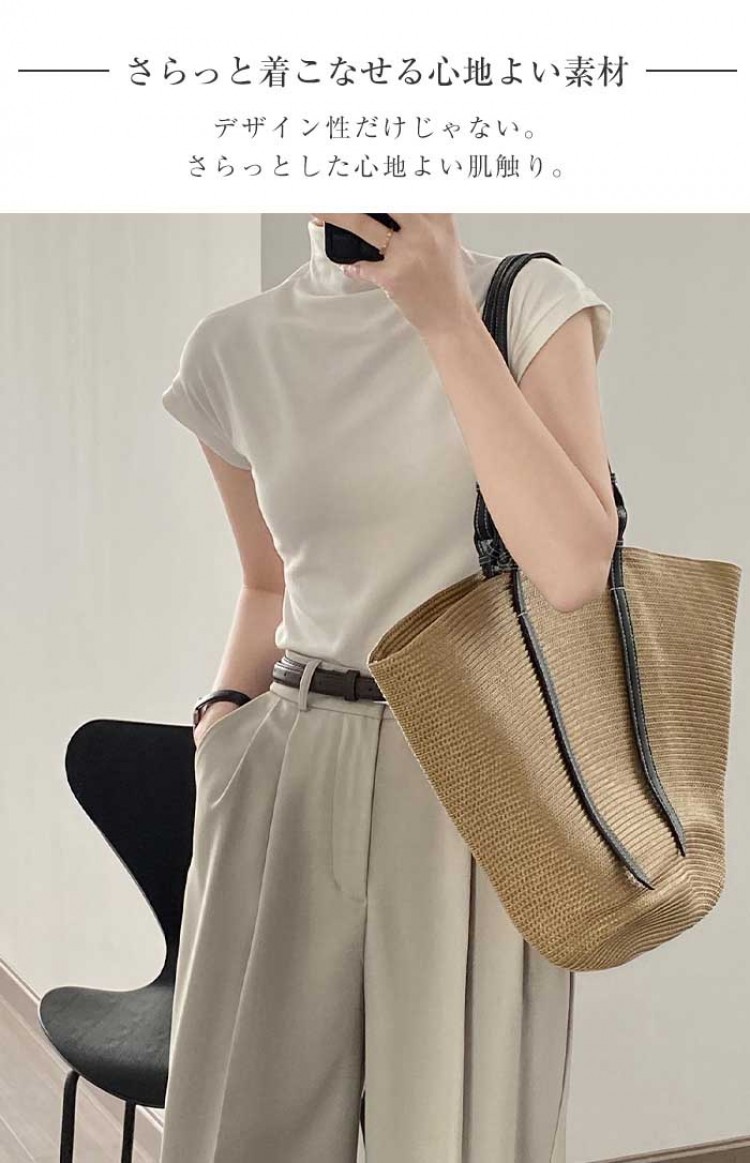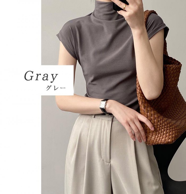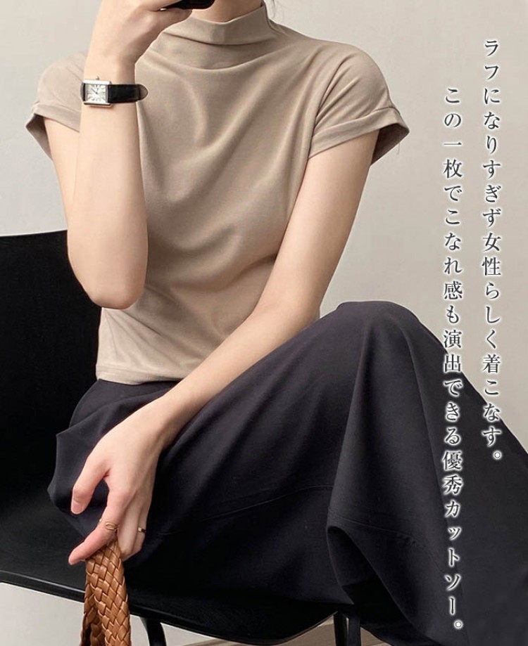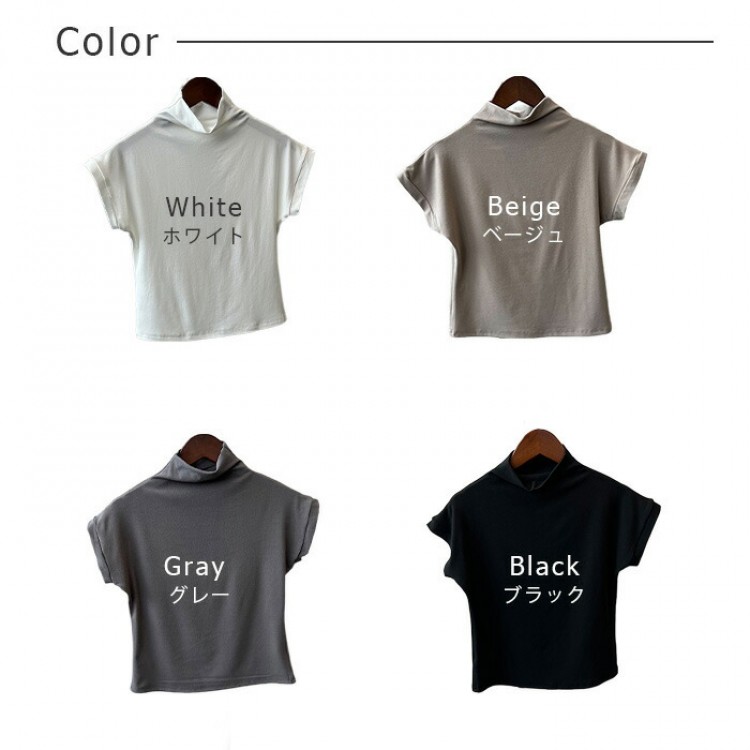 ハイネック カットソー レディース T トップス Tシャツ カットソー 人気 ホワイト ベージュ グレー ブラック M L