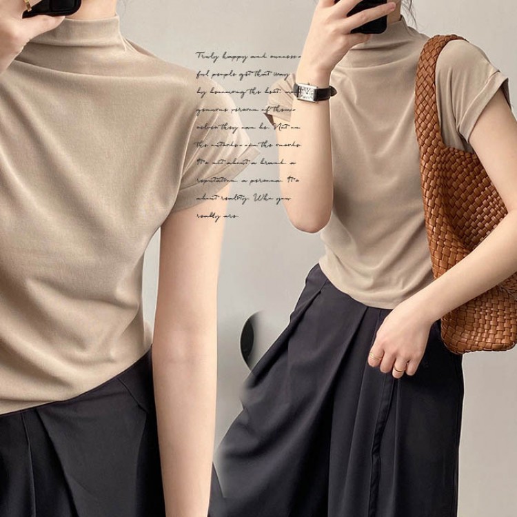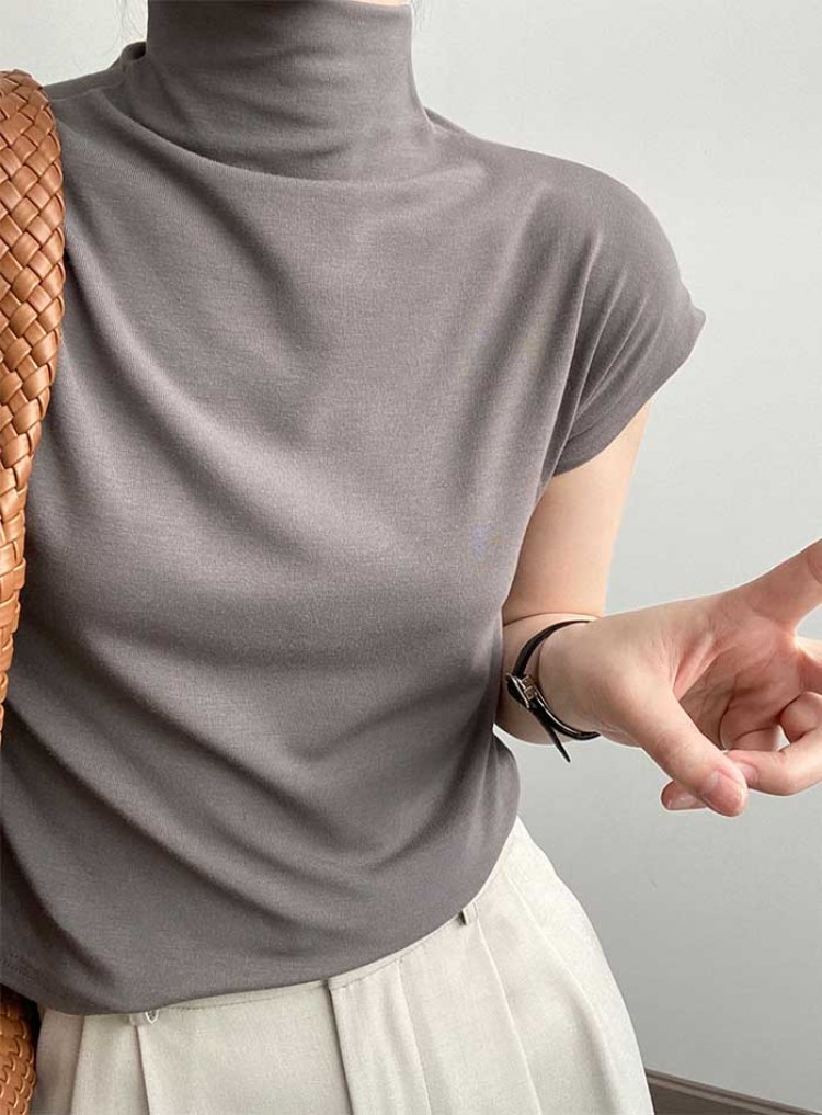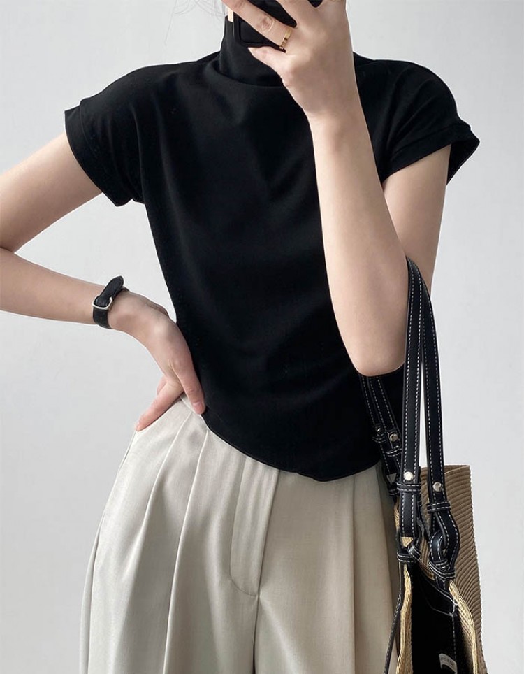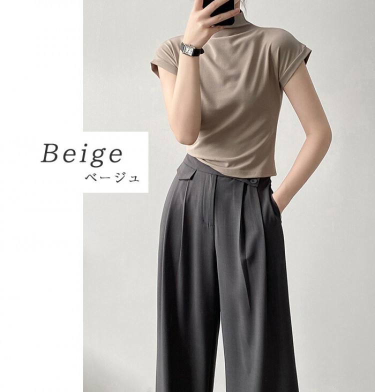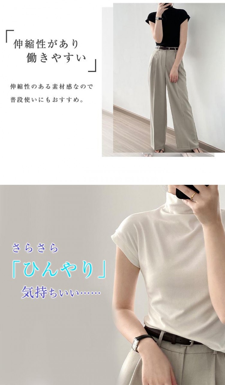 ハイネック カットソー レディース T トップス Tシャツ カットソー 人気 ホワイト ベージュ グレー ブラック M L