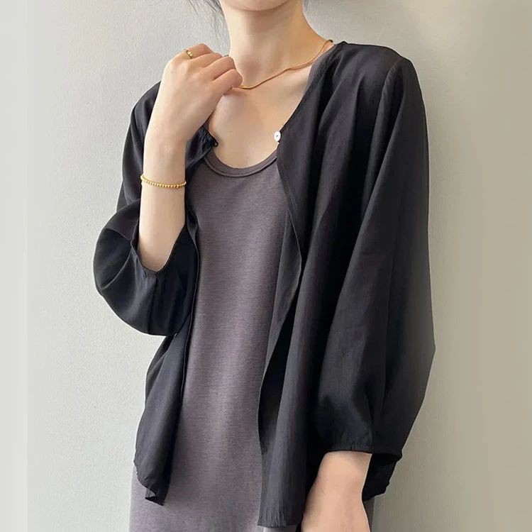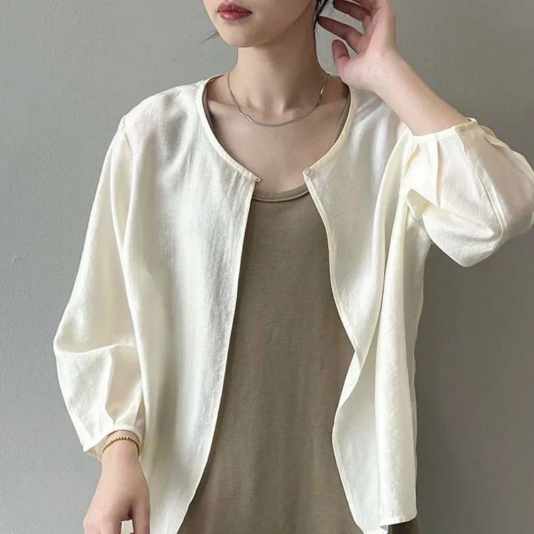 長袖 レディース ノーカラー 日焼け対 トップス カーディガン ボレロ 続々入荷中 アイボリー ブラック ベージュ M L XL 2XL 3XL