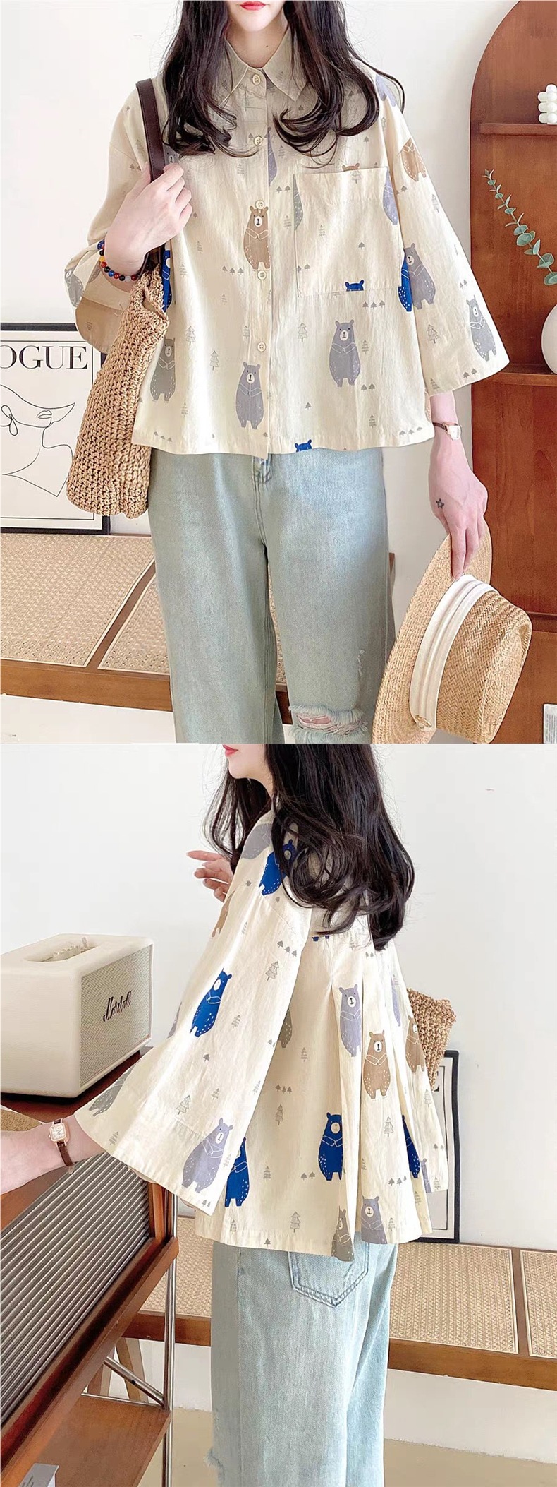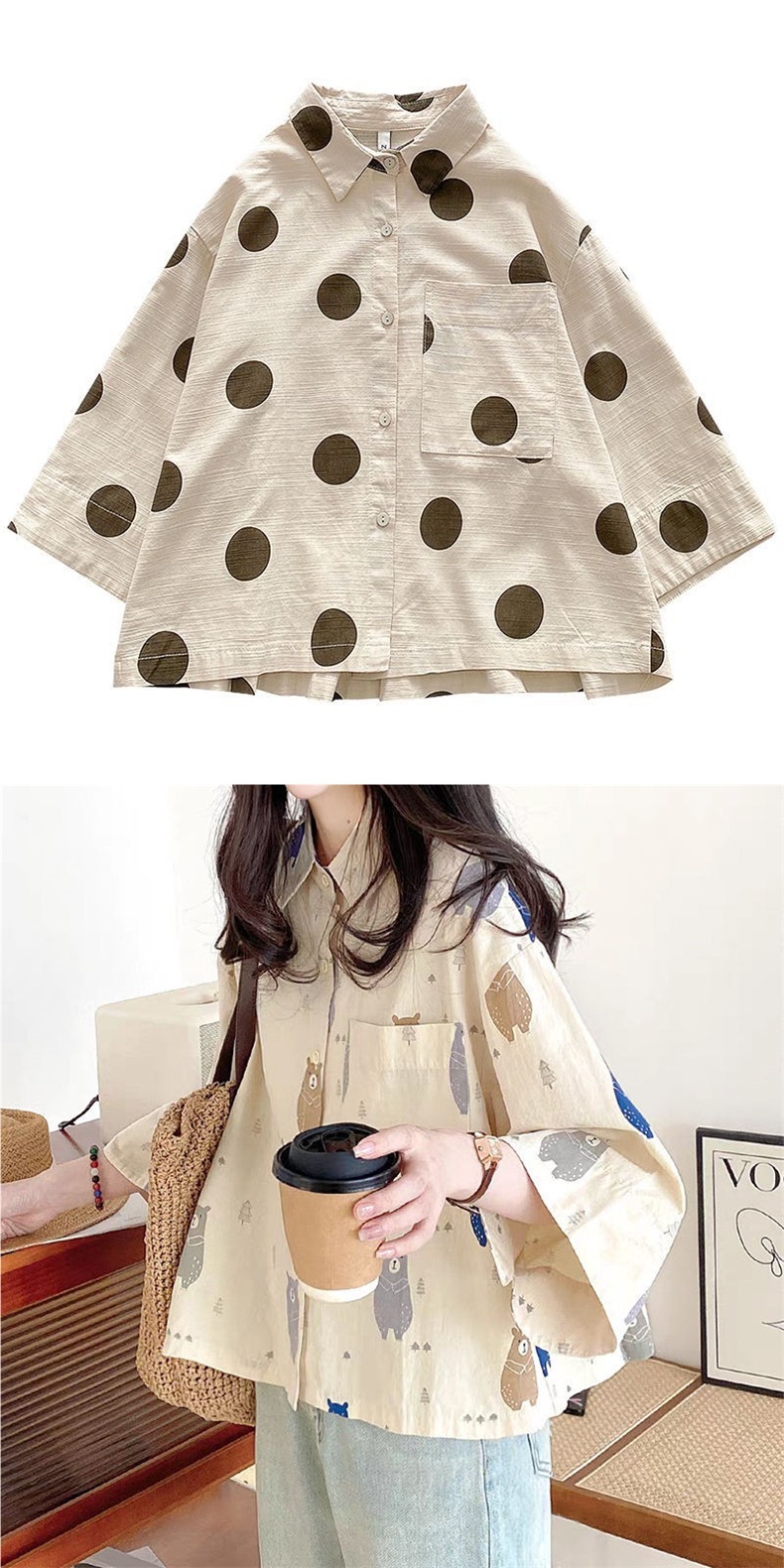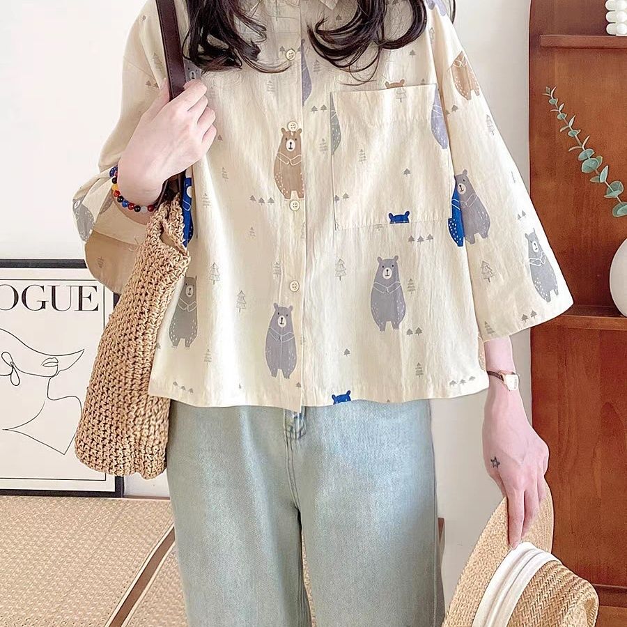 レディース 半袖シャツ Tシャツ リネ トップス Tシャツ カットソー 通販 水玉 子熊 M L XL XXL