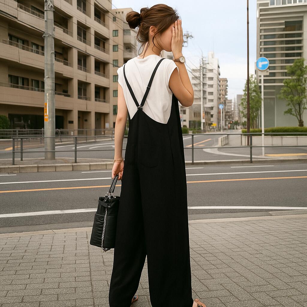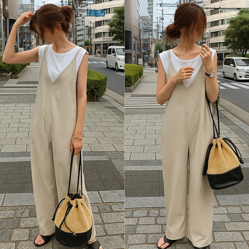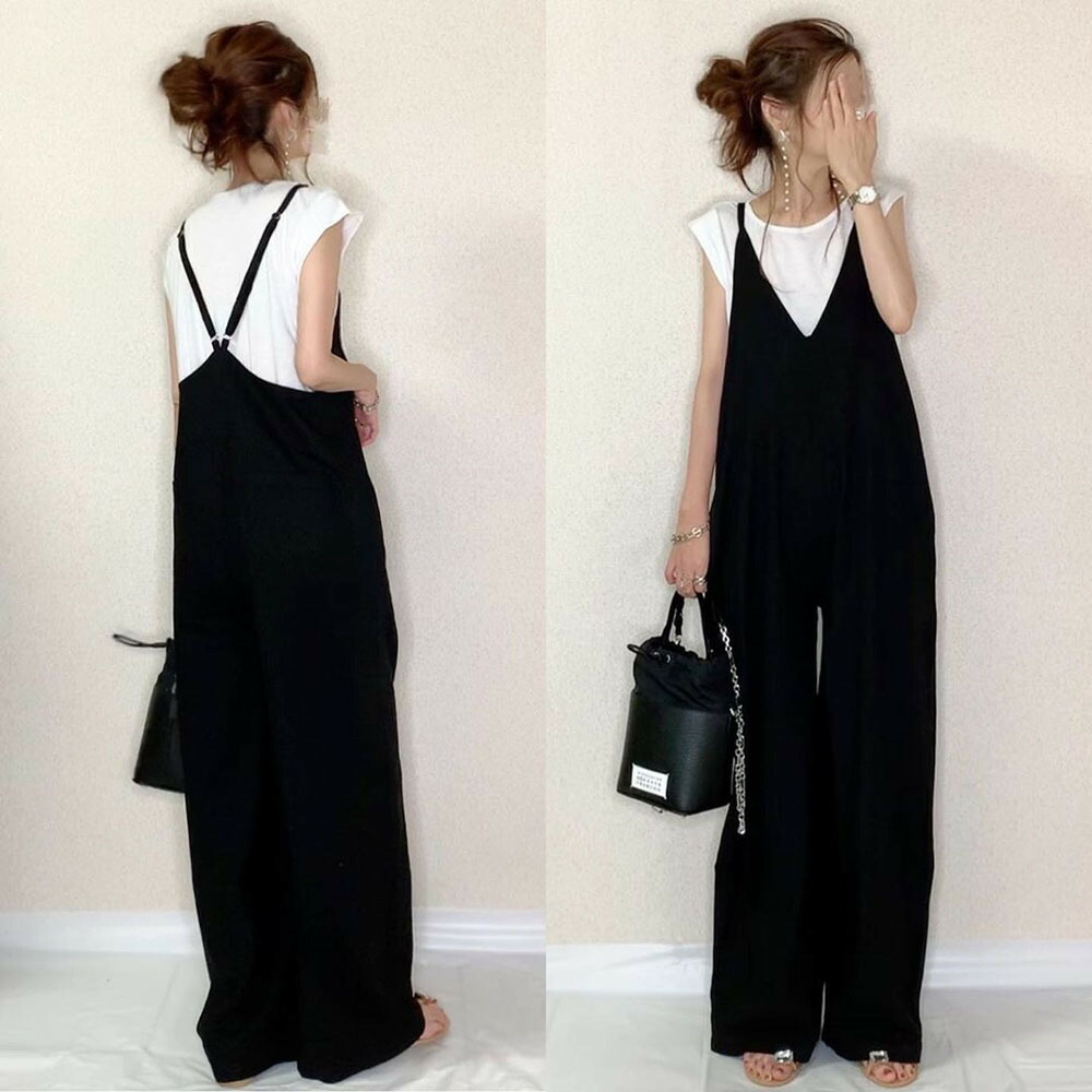 サロペット ワンピース 半袖 Vネック ワンピース 超目玉商品 ブラック カーキ
